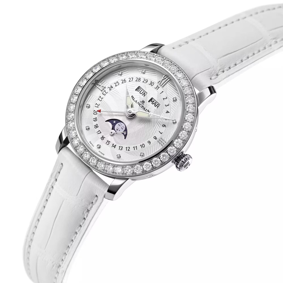Ref. 3663A 4654 55B - Mit der Präsentation der ersten automatischen Armbanduhr für Damen gilt Blancpain seit 1930 als Pionier in der Geschichte der Damenuhr. Seitdem hat Blancpain unaufhörlich innovative Konzepte entwickelt, indem sie Uhrwerke miniaturisiert haben, um die Damenmodelle mit jenen uhrmacherischen Komplikationen auszustatten, die bis dahin den Herren vorbehalten waren. Diese ästhetisch innovative Kollektion bleibt auf diese Weise den grundlegenden Werten von Blancpain treu.
