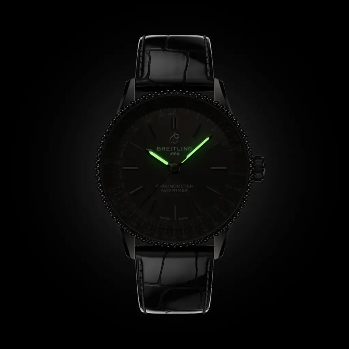 Ref. A17327381B1P1 - Breitlings Ikone – für die Reise. Die Navitimer ist eine der bekanntesten Uhren, die je hergestellt wurden. Sie steht als eine der grossartigsten Uhren aller Zeiten auf den Sammlerlisten. Was 1952 als Instrument für Piloten begann, hat inzwischen eine tiefe Bedeutung für jeden, den dieser Zeitmesser auf seiner persönlichen Reise begleitet. Unsere Ikone kommt jetzt in den Grössen 36 und 32 mm für Frauen und Männer, die die Optik und Haptik einer Uhr mit kleinerem Durchmesser lieben. Während die 36-mm-Navitimer die Perlenlünette und den ikonischen kreisförmigen Rechenschieber aufweist, die der Navitimer ihr unverkennbares Aussehen verleihen, verzichtet die beeindruckende 32-mm-Variante auf den Rechenschieber zugunsten eines schlichteren Zifferblattdesigns, das auf den schlanken Durchmesser abgestimmt ist.