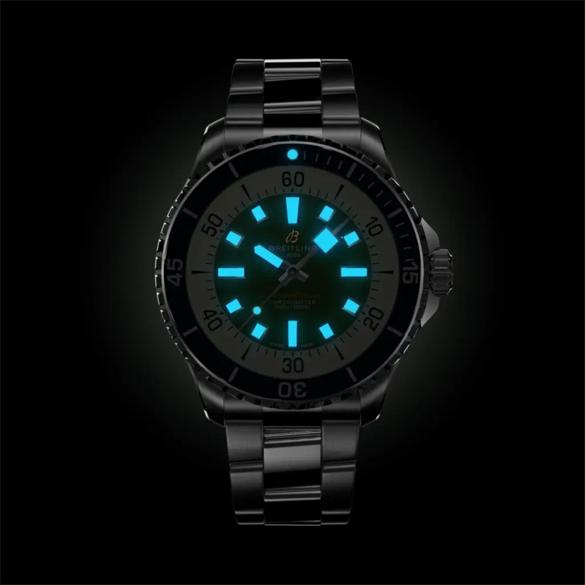Ref. A17376A31L1A1 - Die neue Superocean sieht nicht nur gut aus, sondern ist auch ein technisches Meisterwerk. Sie ist bis 300 m (1000 ft) wasserdicht und verfügt über breite Zeiger und Indizes, die mit Super-LumiNova® beschichtet sind und eine außergewöhnlich gute Ablesbarkeit unter Wasser ermöglichen. Ihre kratzfeste Lünette mit Keramikeinlage verschleißt nicht und bleicht nicht aus. Aus Sicherheitsgründen ist die Lünette bei den meisten Größen nur einseitig drehbar; die bidirektionale Lünette der 46-mm-Uhr ist durch eine patentierte Arretierung gesichert. Darüber hinaus ist diese Uhr stoßfest sowie sand- und salzwasserbeständig. Für das automatische Breitling-Kaliber 17 gilt eine 2-jährige Garantie und das Uhr werk bietet ca. 38 Stunden Gangreserve.