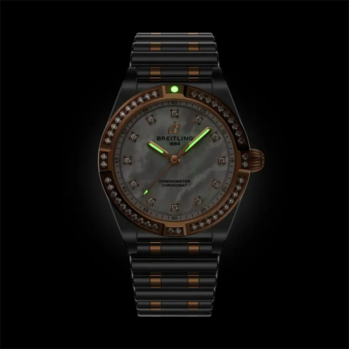 Ref. U72310531A1U1 - Die zierliche Chronomat 28 liegt voll im Trend und ist dennoch zeitlos – eine vielseitige, sportlich-schicke Uhr für jede Gelegenheit. Doch diese Blickfänger haben viel mehr zu bieten als nur ihre kompakte neue Grösse.Perlmutt in verschiedenen Farbtönen und rückverfolgbare, im Labor gezüchtete Diamanten verleihen den dezenten und doch edlen Zeitmessern den Charakter eines Schmuckstücks. Wählen Sie Gehäuse- und Rouleaux-Armband in der gewünschten Ausführung: von schlichtem Edelstahl bis zum zweifarbigen Metallmix – alle mit einer komfortablen Doppelfaltschliesse ausgestattet. Die Chronomat 28 wird von einem Breitling-Kaliber 72, einem COSC-zertifizierten SuperQuartz™-Chronometer, angetrieben.