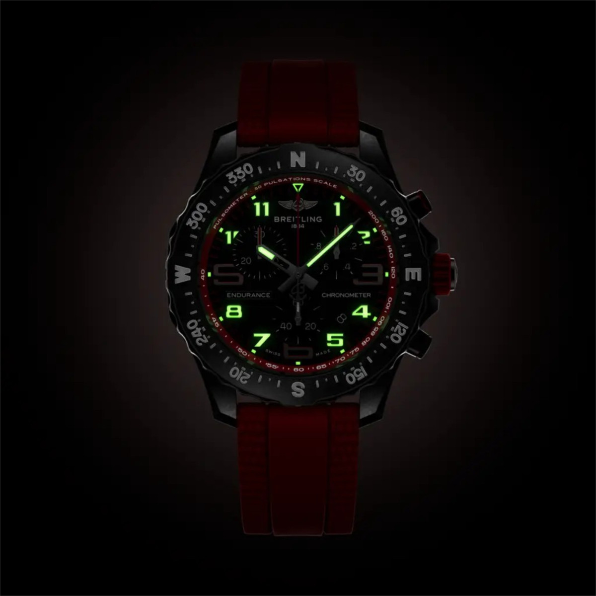 Die Endurance Pro verfügt über ein ultraleichtes Gehäuse aus Breitlight®. Dieser widerstandsfähige Werkstoff ist 3,3-mal leichter als Titan und 5,8-mal leichter als Edelstahl. Das antimagnetische, thermisch stabile und hypoallergene Breitlight® ist hochgradig kratz-, zug- und korrosionsfest. Die haptische Wirkung ist wärmer als die von Metall; der leichte Textureffekt unterstreicht den Einfallsreichtum des Designs. Das Material ist zu 100 % Swiss-made und nur bei Breitling erhältlich. Neben einem Durchmesser von 44 mm oder 38 mm haben Athleten bei der Endurance Pro ausserdem die Wahl zwischen zahlreichen farbenfrohen Zifferblättern und Kautschukarmbändern mit der Breitlight®-Dornschliesse. Beide Grössen werden vom Breitling-Kaliber 82 bzw. 83 angetrieben. Diese COSC-zertifizierten SuperQuartz™-Chronographen zeichnen sich durch eine aussergewöhnliche Ganggenauigkeit aus.