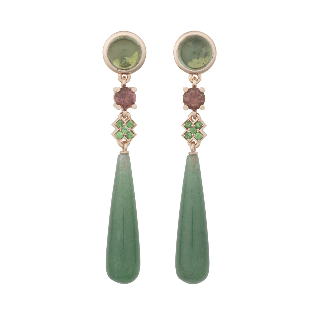 Ref. 4OR4829GTCRTTSAV - Jedes Paar dieser Ohrringe ist spektakulär! Hier mit einer wunderschönen Kombination aus Turmalin, Tsavorite und Aventurin..