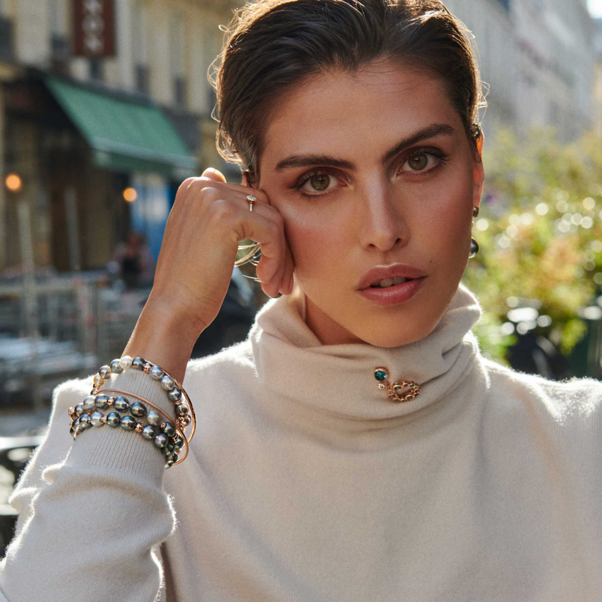 Ref. 8AR4037THB8BR - Zeitlos elegant, sehr komfortabel und unglaublich chic! Armband aus Tahiti-Perlen mit goldenen Elementen und funkelnden Diamanten.