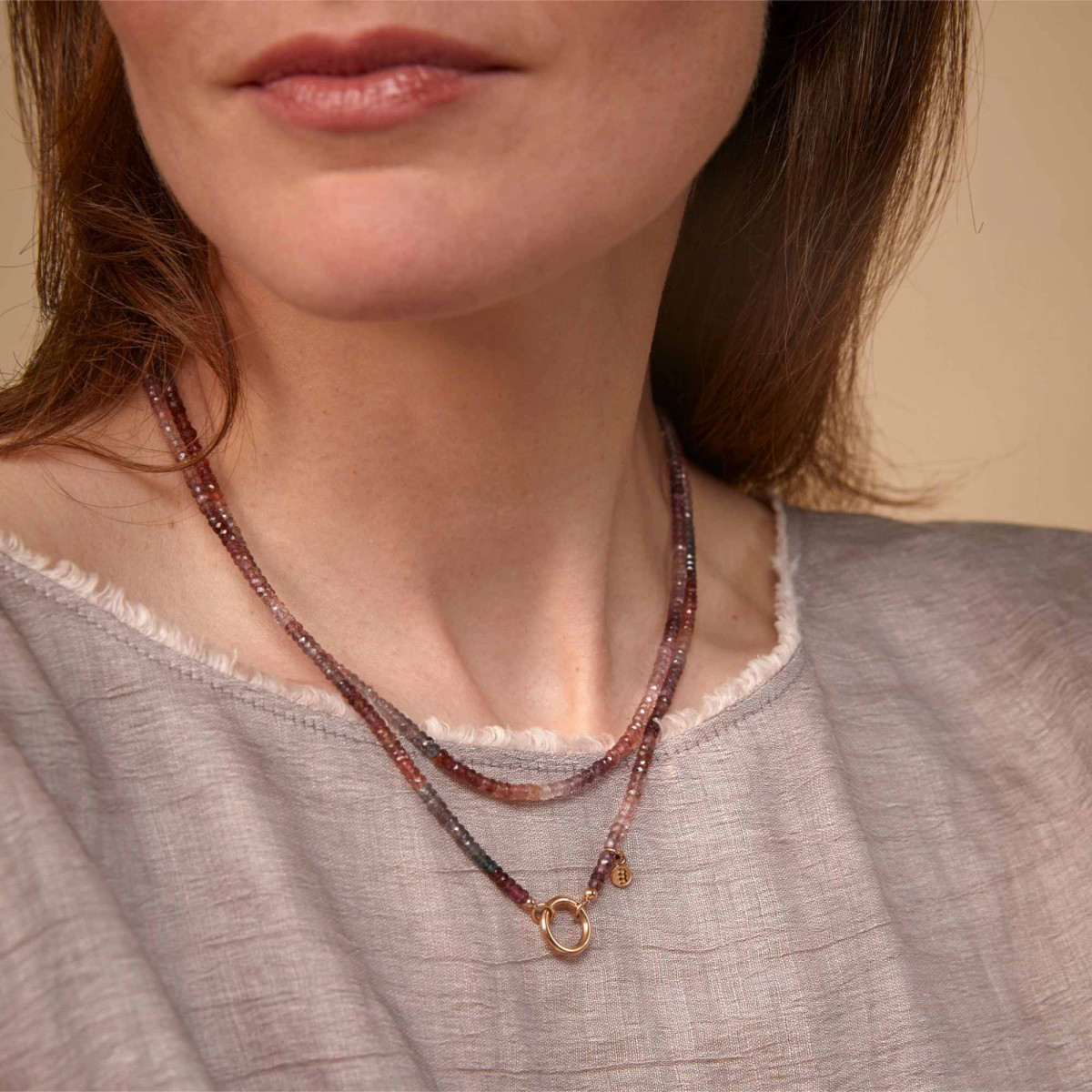 Ref. 8CR4439SP3.5/90 - Halskette aus facettierten Perlen in den typischen "Zwischentönen" des Spinells. Länge 90 cm mit Klickring. Begrenzte Verfügbarkeit.