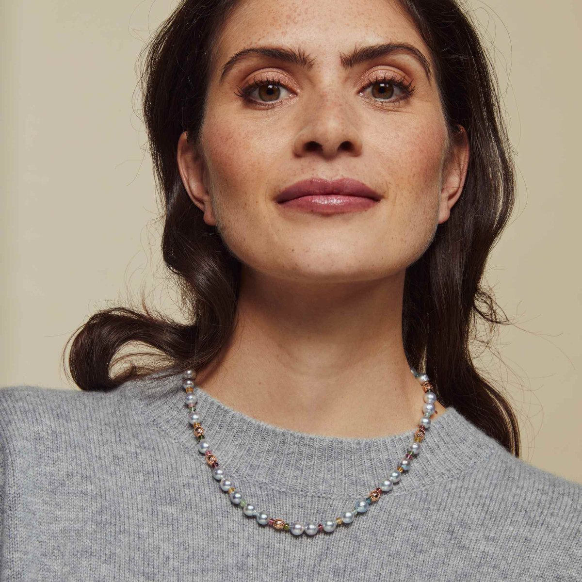 Ref. 8CR4452AKB7MT - Ein unkonventionelles Collier mit barocken Akoya Perlen, mehrfarbigen Turmalinen und zarten Goldkugeln. Limitierte Auflage.