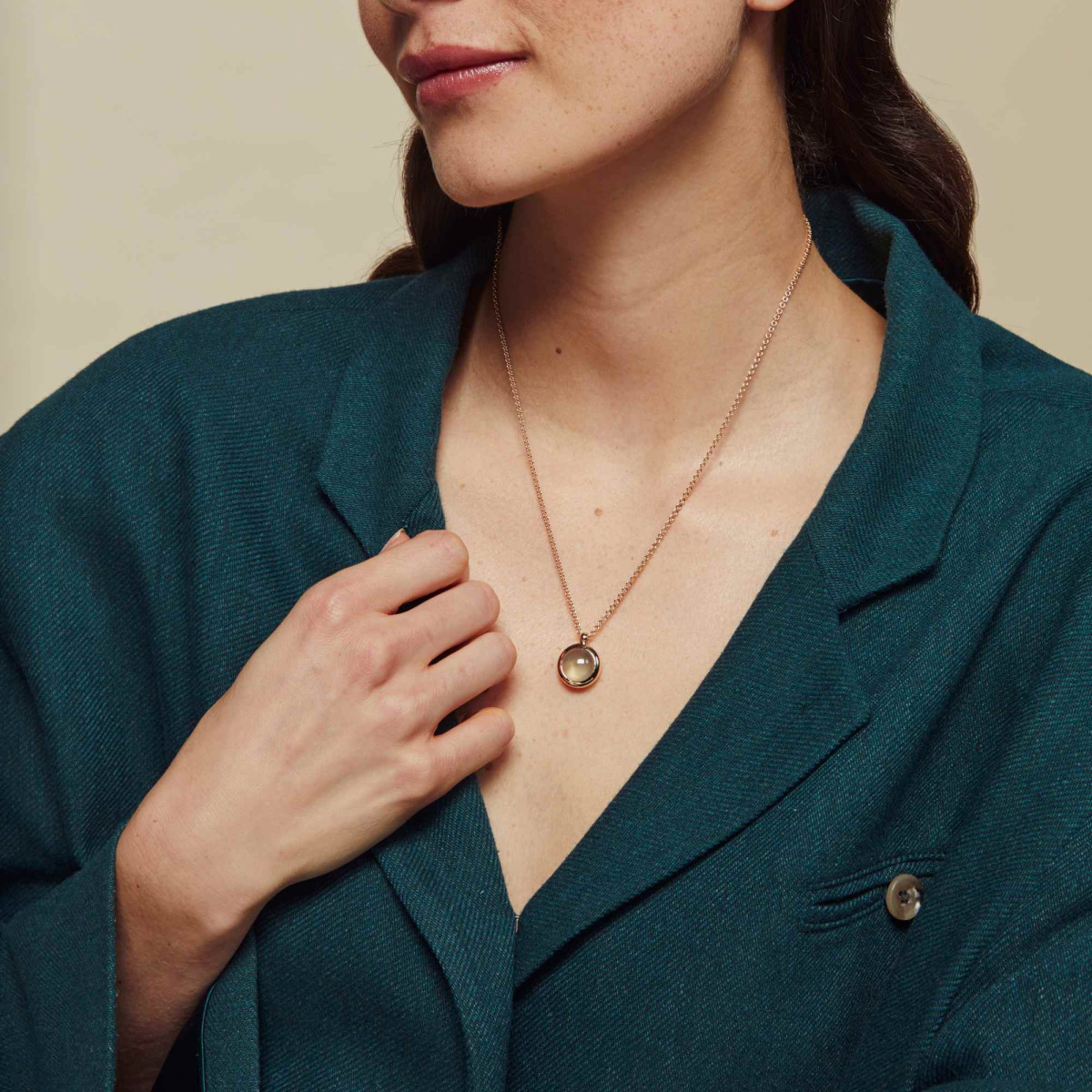 Ref. 8HR3429LQC - Statement-Minimalismus. Ein eleganter, moderner Anhänger mit Lemon Quarz im Cabochon-Schliff.