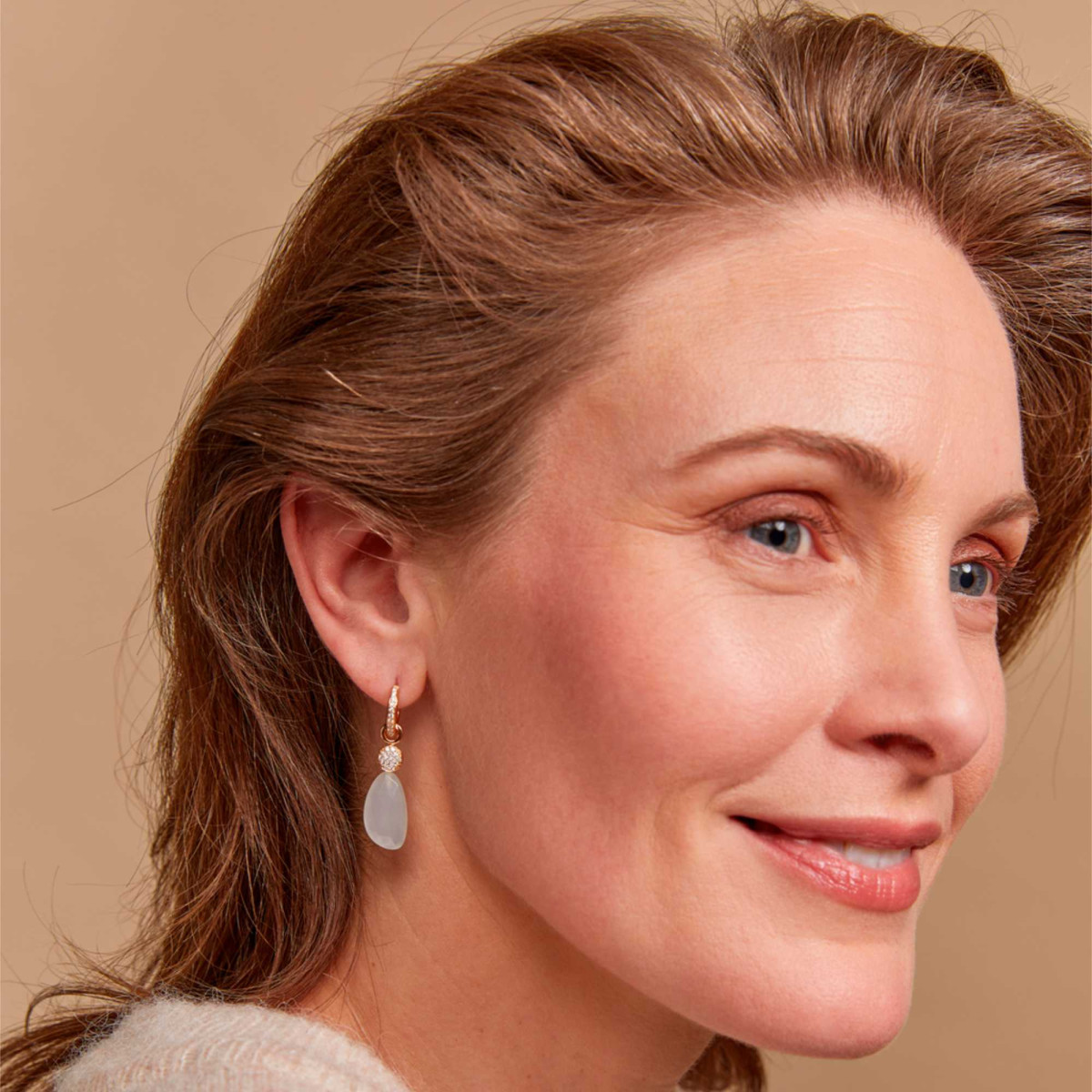 Ref. 8OR4838BRMWB - Auswechselbare Mondstein-Plättchen im Briolett-Schliff unter einem weißen Stardust-Element. Nie aufdringlich, immer verführerisch. Für jede unserer Creolen-Größen.