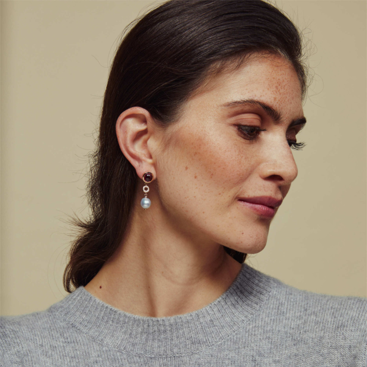 Ref. 8OR4898RHCZZB9BR - Verspielt und doch chic! Perlen, Rhodolith und Diamanten in wunderbarer Harmonie.