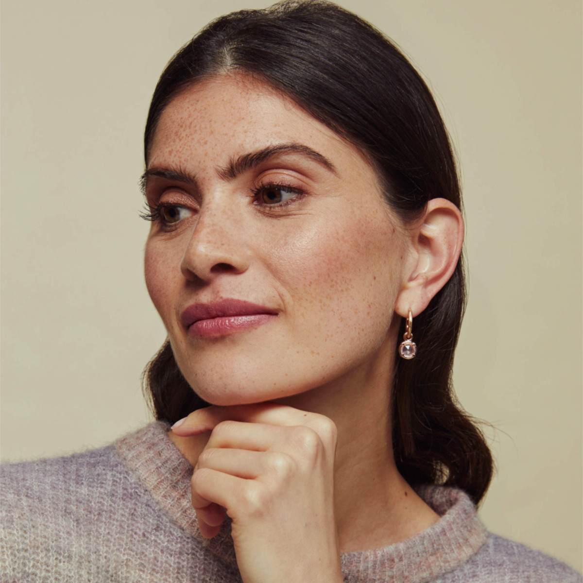 Ref. 8OR4902RQB - Wie die größeren Schmuckstücke von Mira Mira sind auch diese Ohrringe ein echtes Statement und dabei so einfach zu tragen. Der Rosenquarz im Briolette-Schliff ist unglaublich elegant.