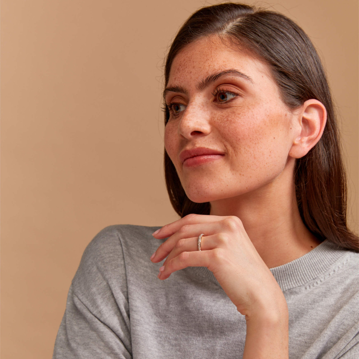 Ref. 8RR4774CBR - Besetzt mit drei Reihen von Diamanten. Belebt jede Ringkombination. Ein starker Anwärter für Ihren Lieblingsring.