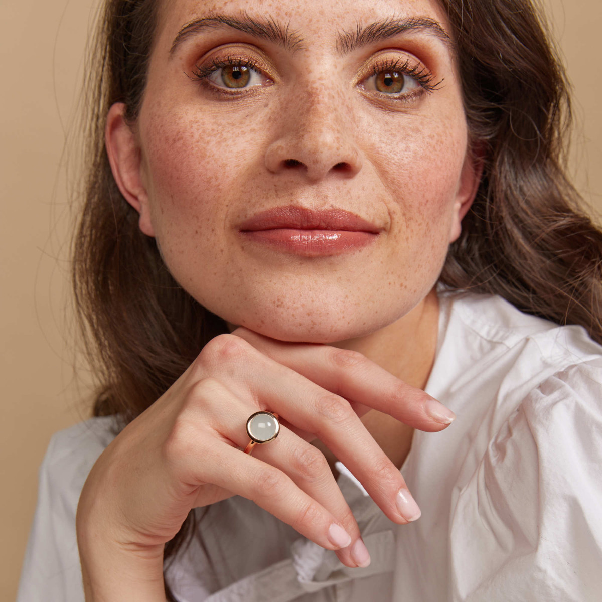 Ref. 8RR4869AQC - Ein bezaubernder meerblauer Aquamarin im Cabochon-Schliff, umhüllt von massivem Gold. Ein echter Hingucker!
