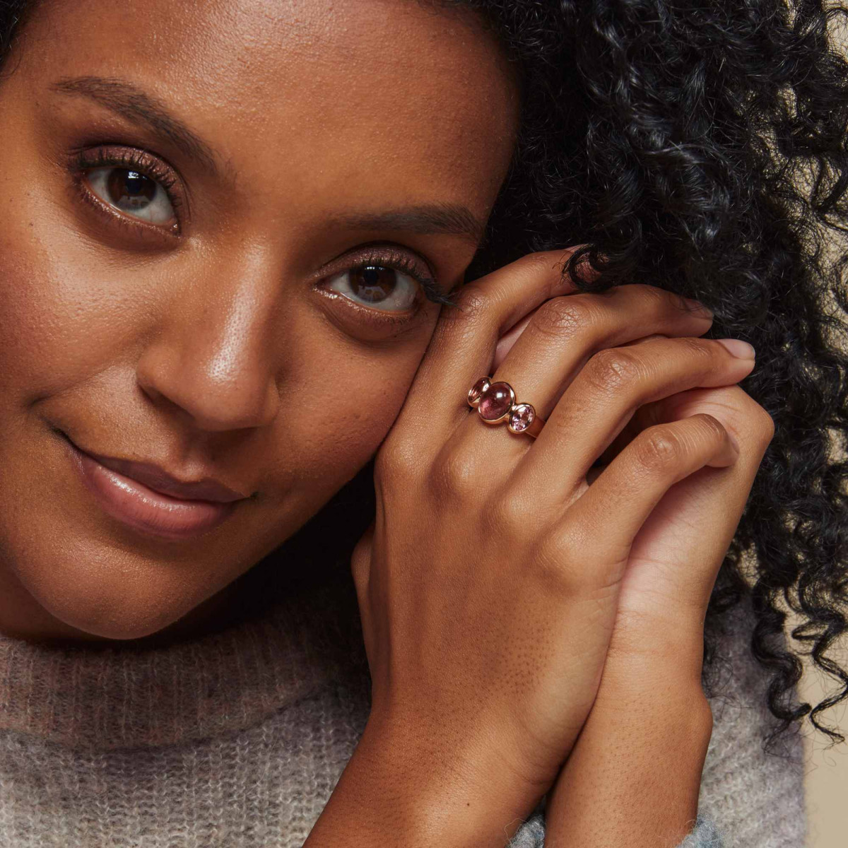 Ref. 8RR4902RTCRT - Rosa Turmaline im Cabochon-Schliff sowie facettiert machen ein wunderschönes Ton-in-Ton Design. Eine atemberaubende Edelsteinkomposition.
