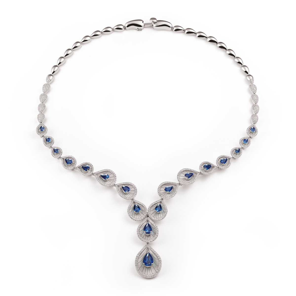 Blaue Saphire im Tropfenschliff