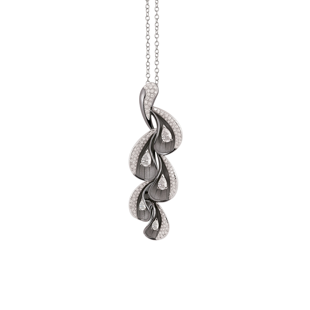 Ref. GPE3488ET40 - Moon Drops entsteht aus der perfekten Umarmung zwischen weichen Goldtropfen, die von einem Rand aus Diamantpavé beleuchtet werden, der an die umhüllende Form des Mondes erinnert. In der Mitte jedes Elements macht ein Stein im Tropfenschliff, der in der Version mit weißem, Fancy Color Diamant oder blauen Saphiren erhältlich ist, jede Kreation noch prächtiger.