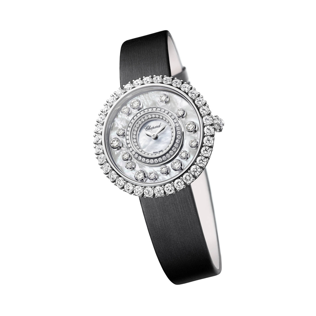 Ref. 204445-1001 - Seit 1976 die erste Happy Diamonds Uhr erfunden wurde, bringen die tanzenden Diamanten die Kollektion auf fröhliche Weise zum Strahlen. Die Happy Diamonds Uhren stehen in erster Linie für einen verspielten und entspannten, unabhängigen Geist, der offen für unbegrenzte Metamorphosen ist. Happy Diamonds wirbeln zwischen zwei Saphirgläsern herum und tanzen unglaublich elegant und pfiffig auf dem Zifferblatt herum. Little Diamonds Do Great Things
