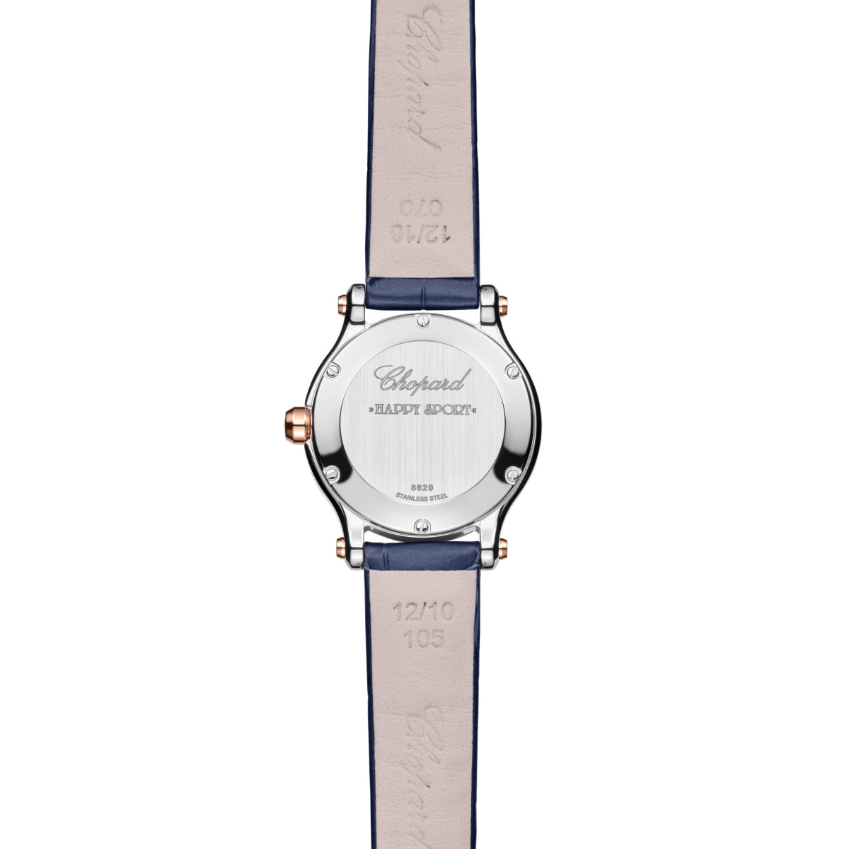 Ref. 278620-6002 - Die Happy Sport Damenuhren mit ihren tanzenden Diamanten verkörpern die Kreativität und Kühnheit von Chopard. Die verspielten, frei beweglichen Diamanten tanzen zwischen zwei Saphirgläsern. Seit 1993 beflügeln sie die Fantasie. Chopard war damals das erste Unternehmen, das Edelstahl mit Diamanten kombinierte. Little Diamonds Do Great Things