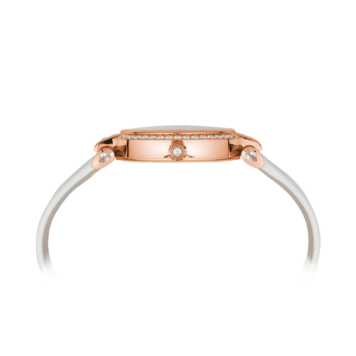 Ref. 384242-5005 - Mit ihrer minimalistischen und stilisierten Silhouette bietet die IMPERIALE Uhrenkollektion eine moderne Interpretation der grossen Symbole historischer Grossreiche. Die Arabeskenmotive, die von den Stickereien der Tuchwaren inspiriert sind, auf denen Monarchen ihre Insignien ablegten, Zeiger in Schwertform mit Durchbruchsdesign, römische Stundenmarkierungen und eine Krone in Form einer Lotusblume erinnern an ein glorreiches Erbe, während die Form der Bandanstösse ganz in der Tradition antiker Säulen gehalten ist, die für ihre perfekt ausbalancierten Proportionen berühmt sind. A tribute to modern achievers