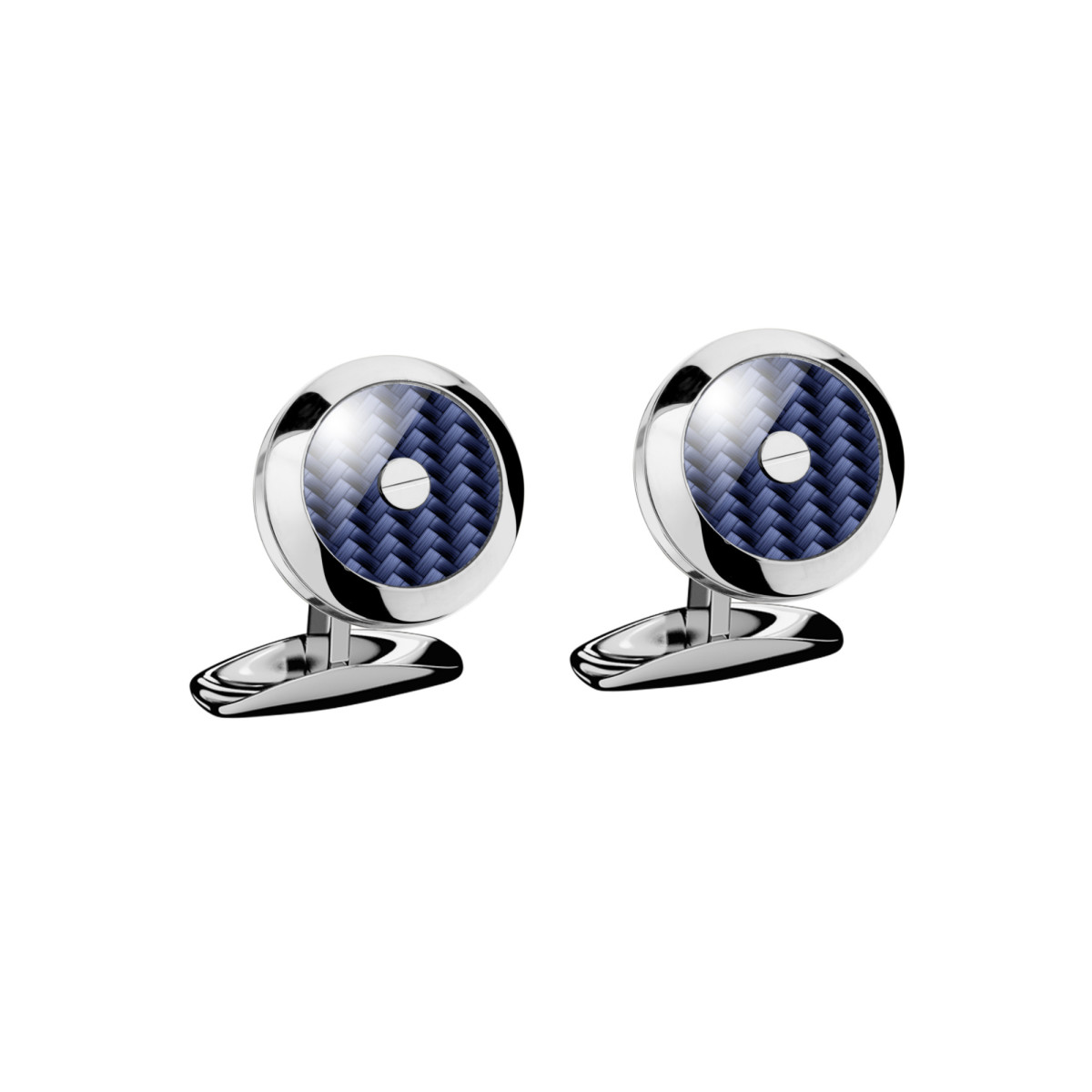 Ref. 95014-0073 - Diese Manschettenknöpfe Classic Racing sind ebenso technisch anspruchsvoll wie elegant und runden das Auftreten eines Gentleman Driver stilvoll ab. Sie überzeugen mit Karbon in Blau, der vom Automobilsport inspiriert ist. Das Griffrohr aus Edelstahl ist subtil mit dem Markennamen graviert und perfekt poliert.