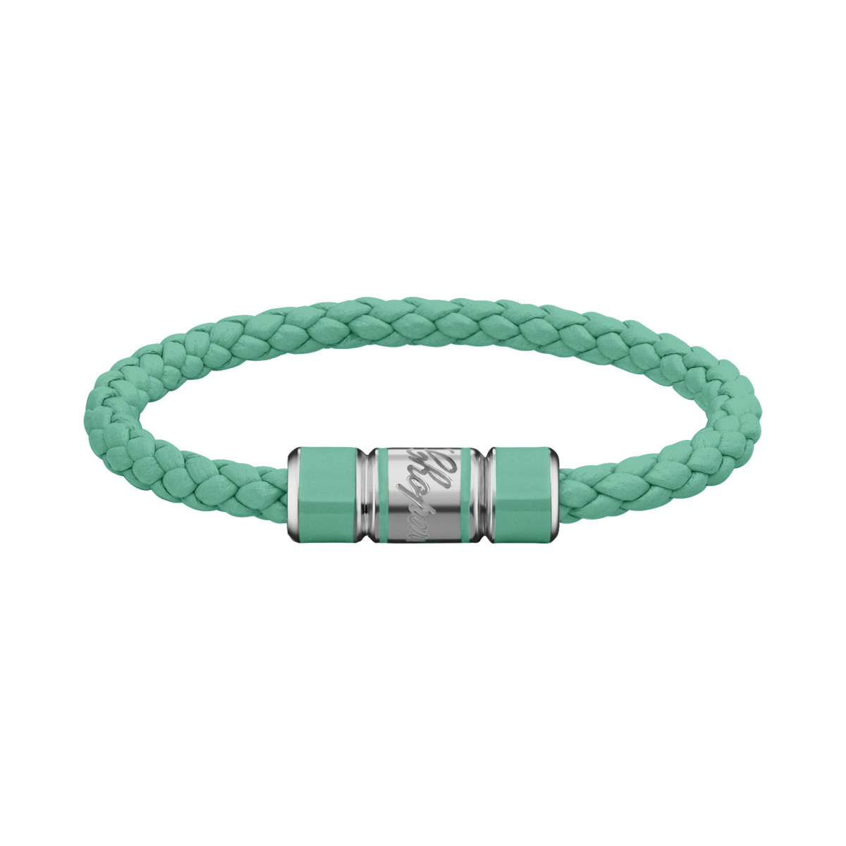 Ref. 95016-0352 - Das Signature Armband in aquagrünem geflochtenem Argile-Lammleder ist modisch und elegant. Die feine Gravur des Chopard Logos und die goldfarbene Metallschließe im Antiklook verleihen diesem diskreten und zugleich luxuriösen und ausdrucksstarken Schmuckstück eine raffinierte Ausstrahlung. Als Symbol der Verbundenheit, der Freundschaft oder der Liebe ist das Armband die gelungene Ergänzung eines schicken und gleichzeitig lässigen Looks.
