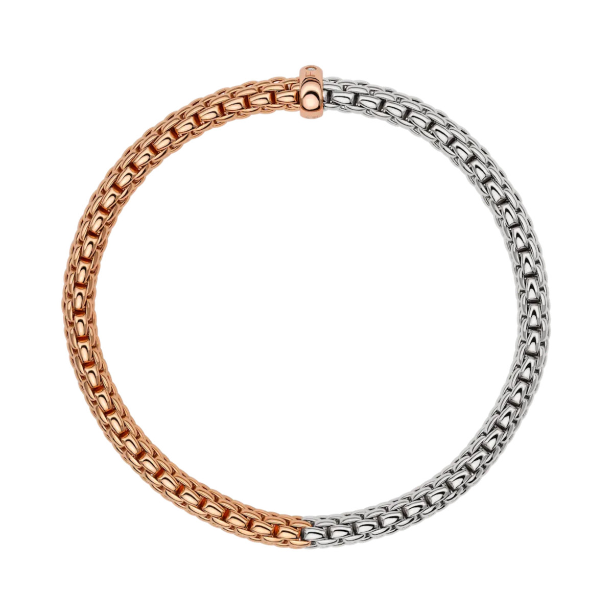 Ref. 01M02B2_BB_1_XRX_0XS - Flexibles Armband komplett aus 18 Karat Gold mit Goldrondell und zweifarbigem Geflecht.