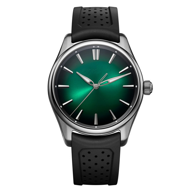 Ref. 3201-1201 - Die sportlich-schicke All-Terrain-Automatikuhr von H. Moser & Cie. kommt jetzt in einem 40-mm-Gehäuse und bringt dabei das beliebte Cosmic Green Fumé-Zifferblatt zurück. Die Pioneer Centre Seconds Cosmic Green ist genauso robust wie ihr grösseres Pendant, jedoch kompakter, und das Automatik-Manufakturwerk von H. Moser & Cie. ist mit Finissierungen in modernen, dunkleren Farbtönen versehen.