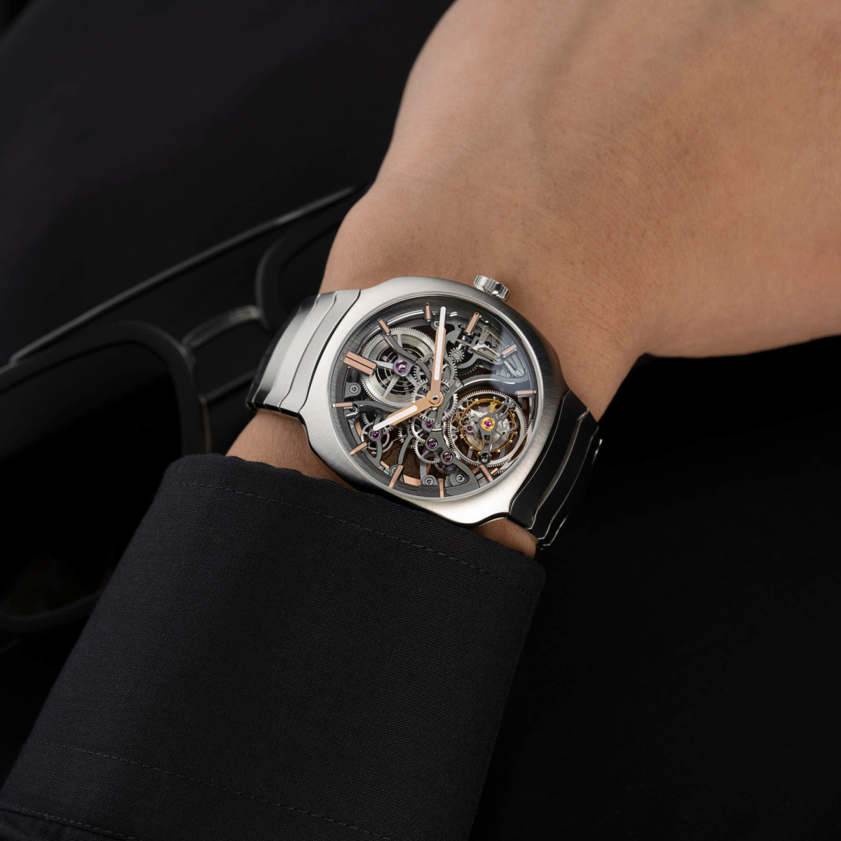 Ref. 6814-1200 - In ihrem typischen minimalistischen Stil hat die Manufaktur H. Moser & Cie. alle entbehrlichen Materialien von ihrem Uhrwerk mit fliegendem Tourbillon entfernt, um ein unvergleichliches visuelles und mechanisches Erlebnis zu bieten. Die Streamliner Tourbillon Skeleton, untergebracht in einem 40-mm-Stahlgehäuse mit integriertem Armband, ist ein Meisterwerk an Raffinesse und Kreativität.