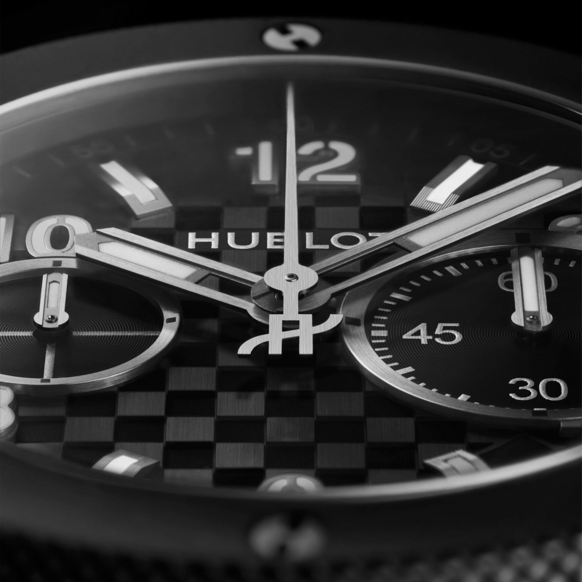 Lünette: glasperlgestrahlte und polierte schwarze Keramik mit strukturiertem Muster an der Seite und 6h- förmigen Schrauben aus Titan