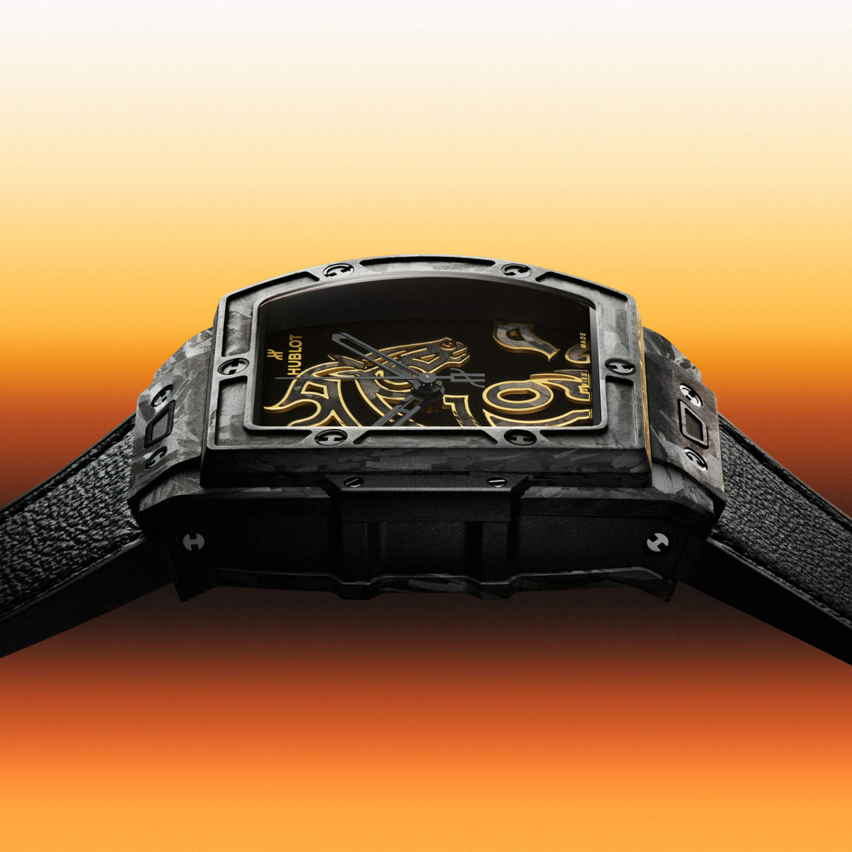 Ref. 646.QK.1230.VR.CNY26 - Hublot hat das Wesen der Big Bang in einer exklusiven Kollektion in „Tonneau“-Form erfasst. Mit ihrer ausgeklügelten Architektur mit mehreren Schichten ebnen die Gehäuse den Weg für unzählige Material-, Farb- und Oberflächenkombinationen.
