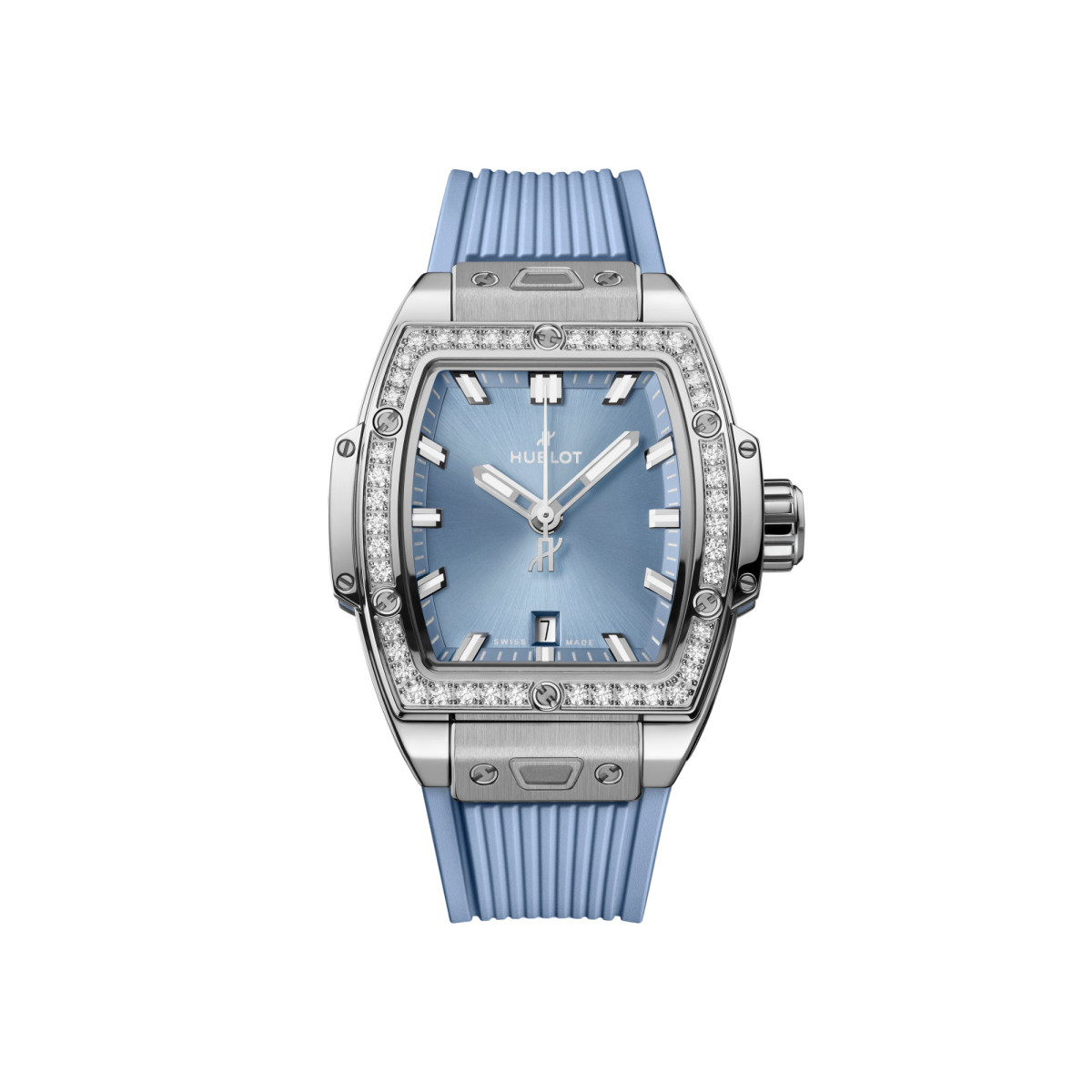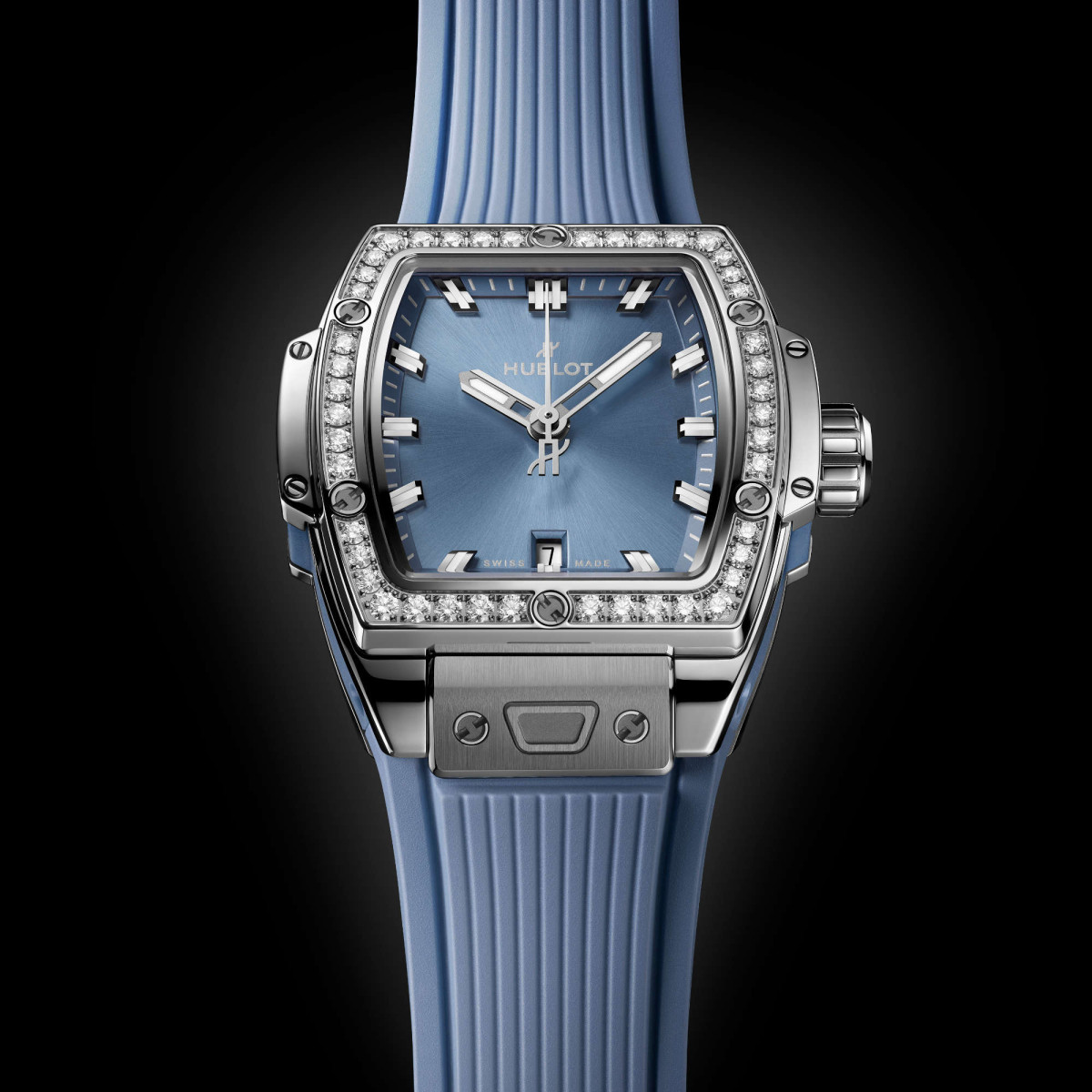Lünette: polierter Edelstahl besetzt mit 44 Diamanten ca. 0.7 ct. und 6 h-förmigen Schrauben aus Titan