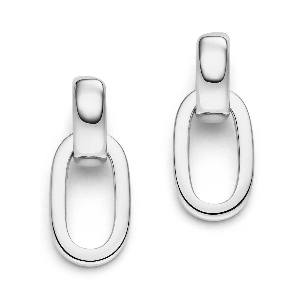 Ref. 04116/RE/SCREOLE-WG - Die neuen ChaCha 16 Ohrringe sind echte Verwandlungskünstler. Zum Einen lassen sie sich als klassische, eng anliegende Creolen tragen. Zudem können zwei leichte rechteckige Kettenelemente eingehängt werden, wodurch sich ihr Look von klassich zu verspielt ändern läasst. Durch die schräge Auflagefläche ist ein perfekter Sitz am Ohr garantiert. Handgefertigt aus 18 Karat Gold.