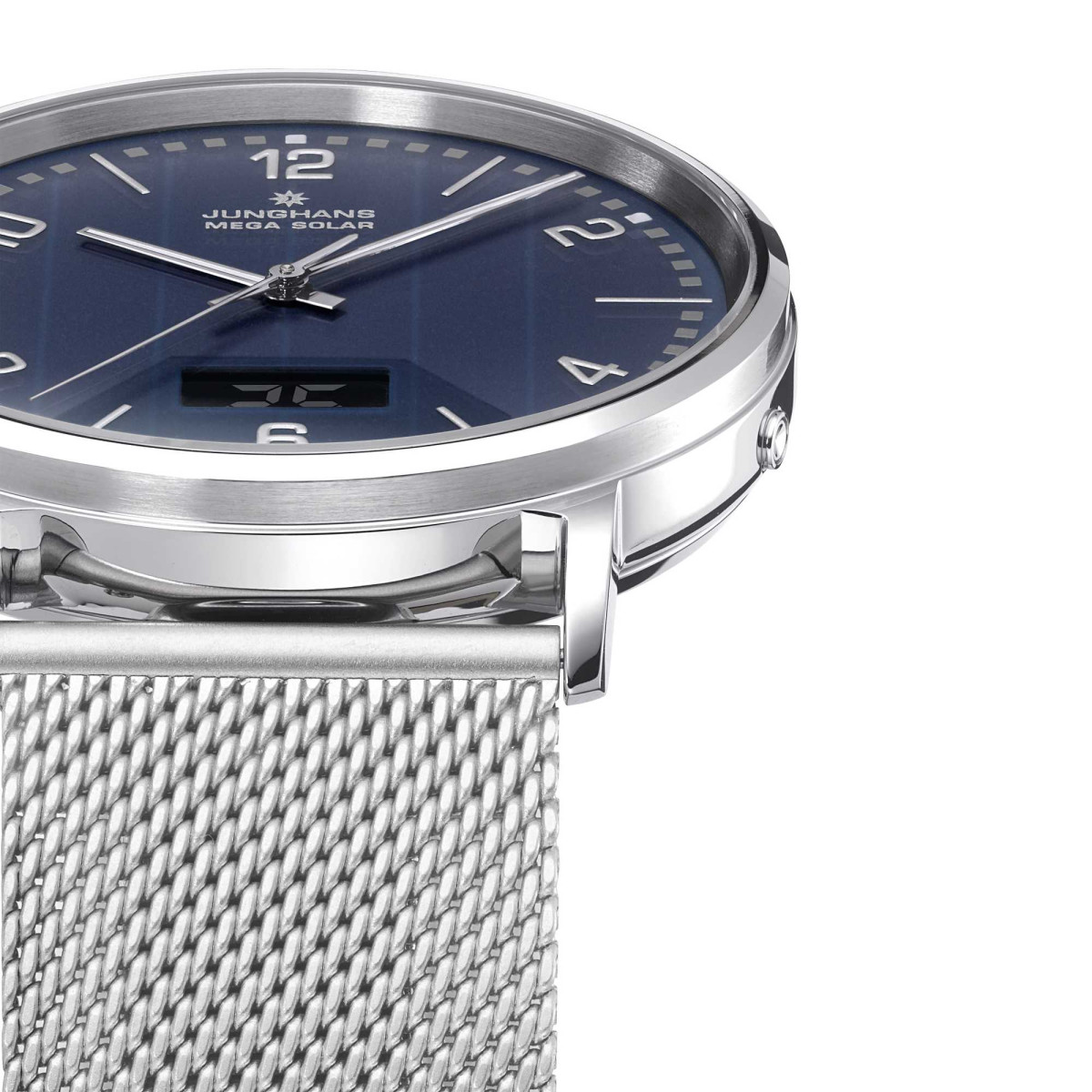 Ref. 56/4629.44 - Funk und Solarantrieb: In beiden Technologien hat Junghans Pionierarbeit geleistet. So bietet die Milano Mega Solar ein modernes technisches Innenleben und zeitgemäße Ästhetik. Die Glassolarzifferblätter werden während des Fertigungsprozesses in unserer Schleiferei und Druckerei in zahlreichen Arbeitsschritten bearbeitet. Die Einstellung ist auch per Junghans App möglich.