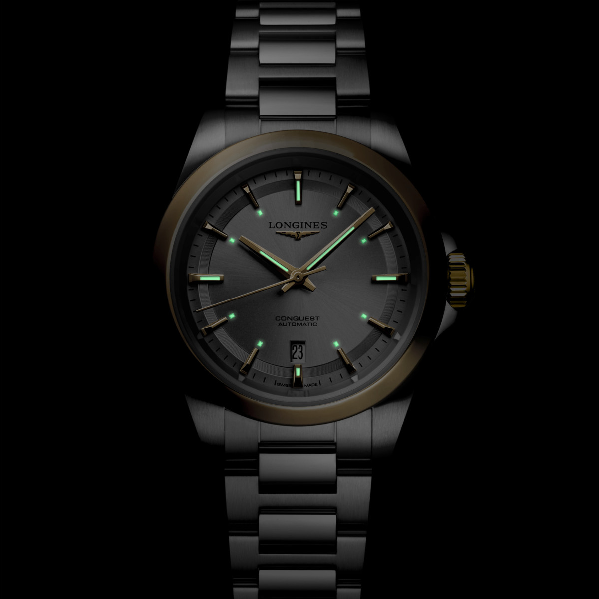 Ref. L3.320.5.70.6 - Die Conquest, die ultimative Uhr für jeden Tag, war auch die erste Longines Kollektion, deren Name 1954 durch das Eidgenössische Institut für Geistiges Eigentum geschützt wurde. Seitdem hat sich die Kollektion durch Design und Technologie weiterentwickelt, ist aber ihrer ursprünglichen Identität treu geblieben und strahlt eine harmonische Mischung aus Kühnheit, zeitgenössischem Design und sportlicher Eleganz aus. Jede Conquest Uhr zeigt das unermüdliche Engagement von Longines für Leistung und uhrmacherische Exzellenz. Mit ihrem vielseitigen Angebot steht die Reihe Conquest für das Engagement von Longines, Uhren für jede Facette des Lebens zu kreieren. Die Kollektion ist in einer Reihe von Größen, Materialien und Farben erhältlich.