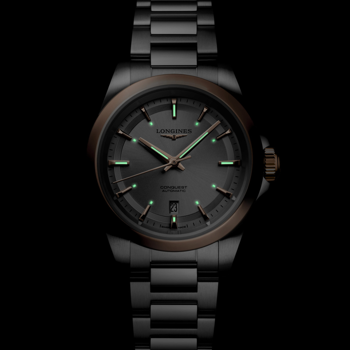 Ref. L3.320.5.72.6 - Die Conquest, die ultimative Uhr für jeden Tag, war auch die erste LONGINES Kollektion, deren Name 1954 durch das Eidgenössische Institut für Geistiges Eigentum geschützt wurde. Seitdem hat sich die Kollektion durch Design und Technologie weiterentwickelt, ist aber ihrer ursprünglichen Identität treu geblieben und strahlt eine harmonische Mischung aus Kühnheit, zeitgenössischem Design und sportlicher Eleganz aus. Jede Conquest Uhr zeigt das unermüdliche Engagement von LONGINES für Leistung und uhrmacherische Exzellenz. Mit ihrem vielseitigen Angebot steht die Reihe Conquest für das Engagement von LONGINES, Uhren für jede Facette des Lebens zu kreieren. Die Kollektion ist in einer Reihe von Größen, Materialien und Farben erhältlich.