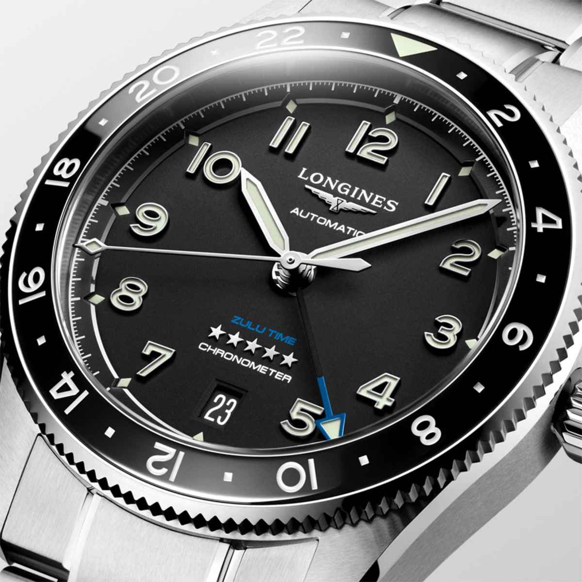 Ref. L3.802.4.53.6 - Mit der Lancierung der Longines Spirit Zulu Time im Jahr 2022 hat die Marke mit der geflügelten Sanduhr ein neues Kapitel in ihrer bereits ereignisreichen Geschichte geschrieben. Dieser Zeitmesser mit mehreren Zeitzonen ist eine Fortsetzung der Präzisionsinstrumente von Longines, die von den größten Pionieren der Welt bei ihren legendären Heldentaten getragen werden. Diese moderne Legende wird nun durch die neue Longines Spirit Zulu Time in einem ergonomisch angenehmen und eleganten 39-mm-Gehäuse fortgeschrieben.Dieses Modell verfügt über eine Lünette mit einem schwarzen Keramikeinsatz und ist mit einem mattschwarzen Zifferblatt mit einem Datumsfenster erhältlich, das auf der 6-Uhr-Position zentriert ist. Das 39-mm-Stahlgehäuse hat ein elegantes austauschbares Edelstahlarmband.