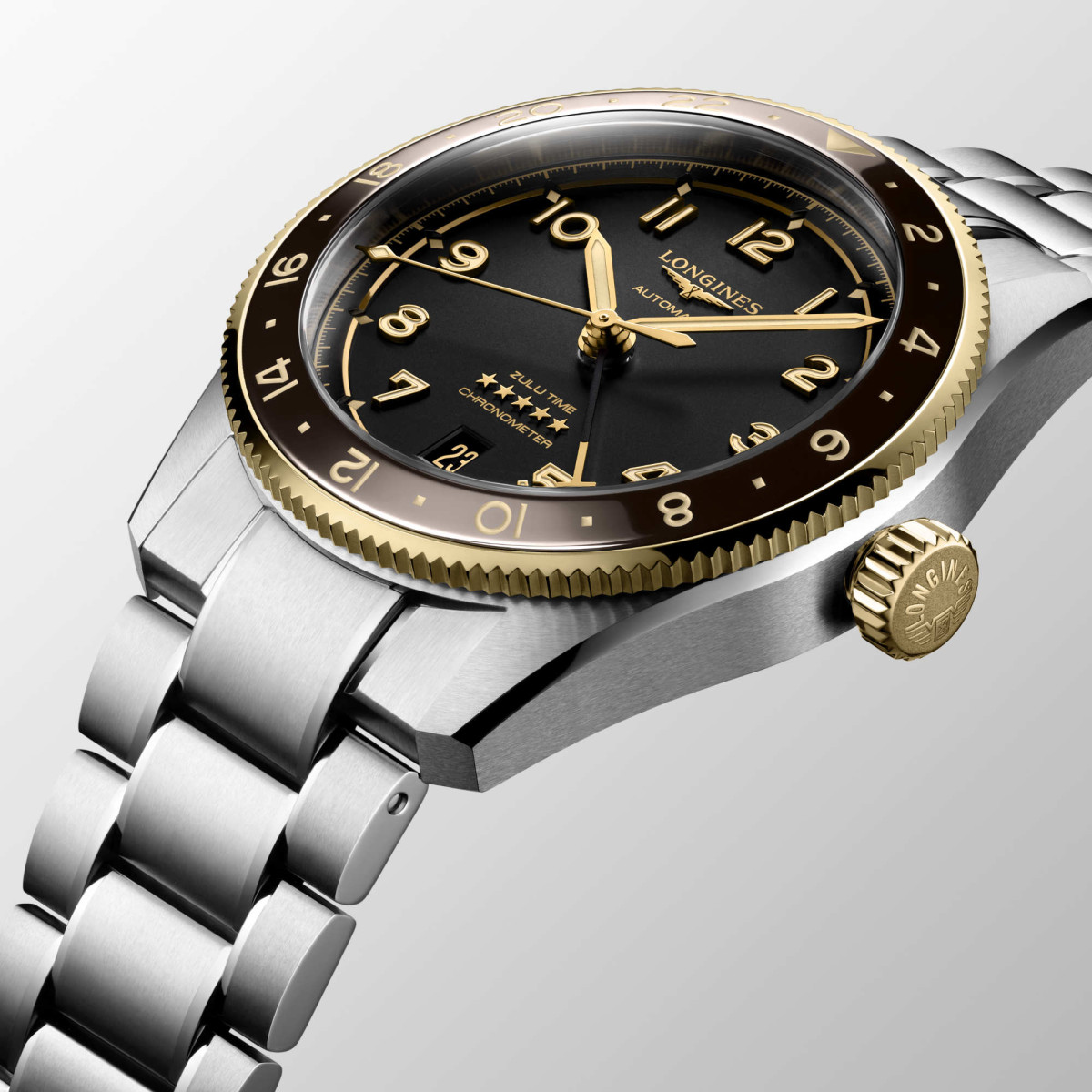 Ref. L3.802.5.53.6 - Mit der Lancierung der Longines Spirit Zulu Time im Jahr 2022 hat die Marke mit der geflügelten Sanduhr ein neues Kapitel in ihrer bereits ereignisreichen Geschichte geschrieben. Dieser Zeitmesser mit mehreren Zeitzonen ist eine Fortsetzung der Präzisionsinstrumente von Longines, die von den größten Pionieren der Welt bei ihren legendären Heldentaten getragen werden. Diese moderne Legende wird nun durch die neue Longines Spirit Zulu Time in einem ergonomisch angenehmen und eleganten 39-mm-Gehäuse fortgeschrieben. Dieses Modell verfügt über eine Lünette in Gelbgold mit einem schokobraunen Keramikeinsatz und ist mit einem anthrazitfarbenen sandgestrahlten Zifferblatt mit einem Datumsfenster erhältlich, das auf der 6-Uhr-Position zentriert ist. Das 39-mm-Stahlgehäuse hat ein elegantes austauschbares Edelstahlarmband.