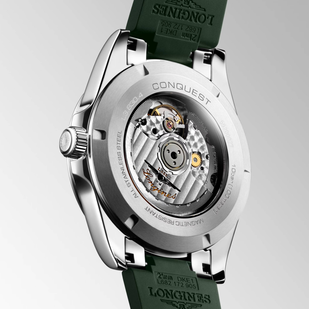 Ref. L3.830.4.02.9 - Die Conquest, die ultimative Uhr für jeden Tag, war auch die erste LONGINES Kollektion, deren Name 1954 durch das Eidgenössische Institut für Geistiges Eigentum geschützt wurde. Seitdem hat sich die Kollektion durch Design und Technologie weiterentwickelt, ist aber ihrer ursprünglichen Identität treu geblieben und strahlt eine harmonische Mischung aus Kühnheit, zeitgenössischem Design und sportlicher Eleganz aus. Jede Conquest Uhr zeigt das unermüdliche Engagement von LONGINES für Leistung und uhrmacherische Exzellenz. Mit ihrem vielseitigen Angebot steht die Reihe Conquest für das Engagement von LONGINES, Uhren für jede Facette des Lebens zu kreieren. Die Kollektion ist in einer Reihe von Größen, Materialien und Farben erhältlich.