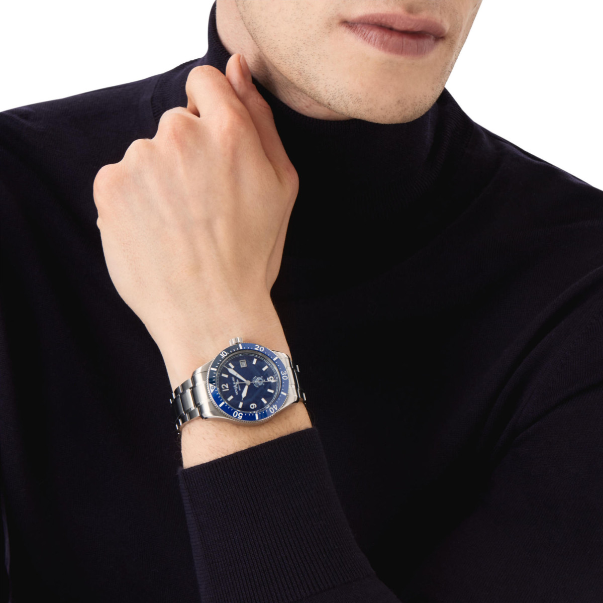 Ref. MB129369 - Als erste Taucheruhr von Montblanc verfügt die Montblanc 1858 Iced Sea Automatic Date über ein Zifferblatt mit Eisbergmotiv, das den Eindruck vermittelt, als blicke man in die Tiefen eines Gletschers. Das blaue Eisbergmuster ist von Mer de Glace inspiriert, diem Hauptgletscher des Mont Blanc Massivs. Seine Textur wurde mithilfe einer nahezu in Vergessenheit geratenen Technik erhalten, dem „gratté-boisé“. Die Uhr verfügt über eine einseitig drehbare, zweifarbige Keramiklünette, einen gravierten Gehäuseboden und ein schmal verlaufenden, austauschbares Edelstahlarmband mit feinen Einstellungen für einen präzisen Sitz. Die Uhr erfüllt die Anforderungen der ISO 6425 Norm für Taucheruhren und ist wasserdicht bis 300 Meter.