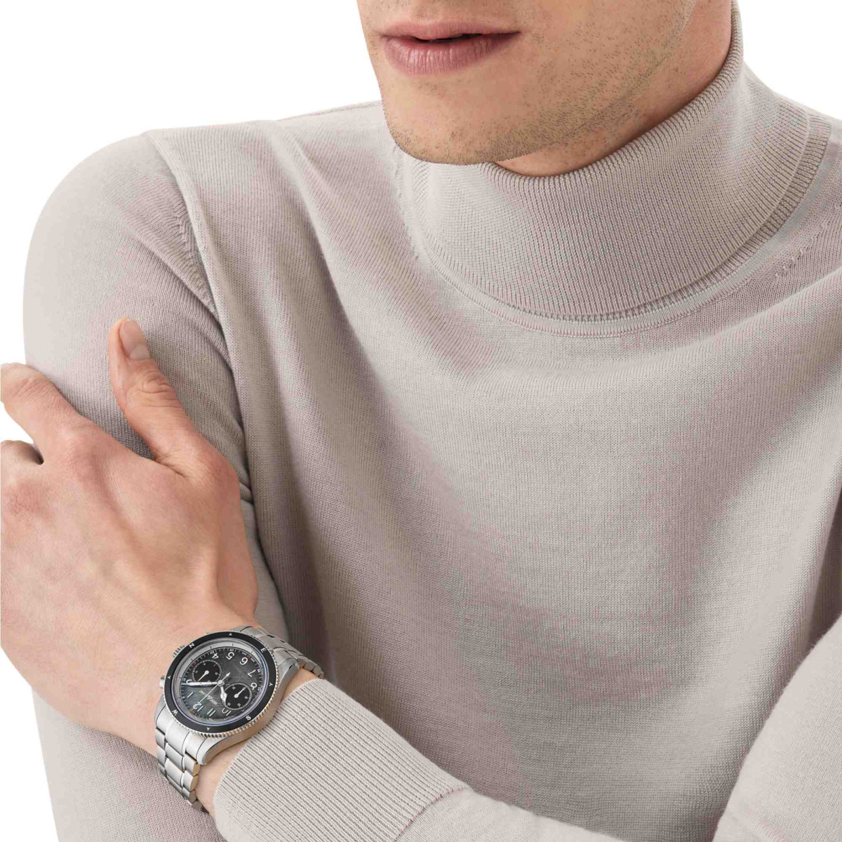 Der Gehäuseboden ist mit dem „Spirit of Exploration“ Muster graviert und die Uhr verfügt über ein austauschbares, schmal zulaufendes Edelstahlarmband mit Feineinstellung.