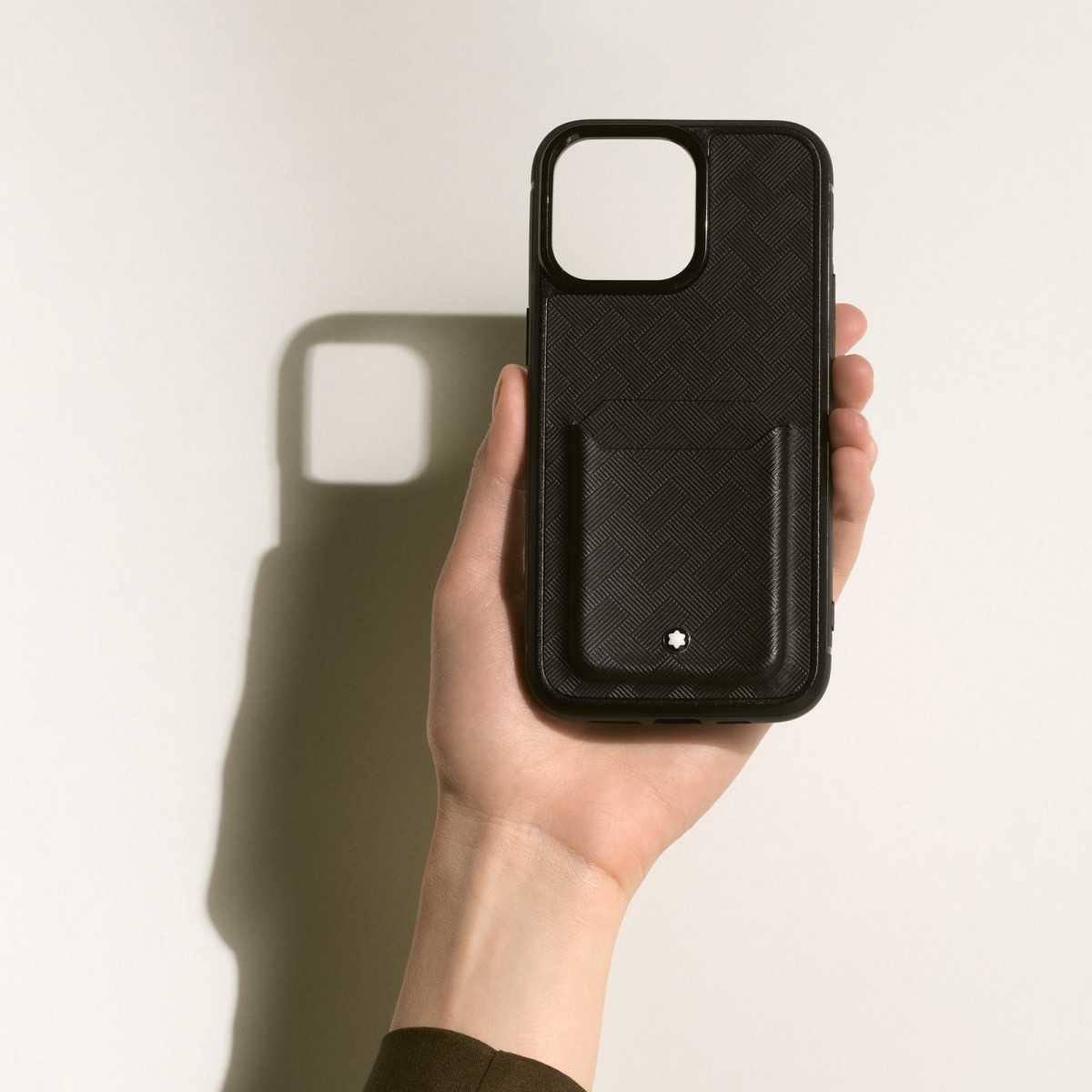 Ref. MB198889 - In einer Kombination aus sportlichem Design und Eleganz bietet diese Telefonhülle der Extreme 3.0 Collection einen hervorragenden Schutz für das Apple iPhone® 16 Pro Max. Dieses robuste Etui aus unserem unverwechselbarem genarbtem Leder in Schwarz verfügt über zwei Schlitze auf der Rückseite, um Ihre Karten einfach zu verstauen.