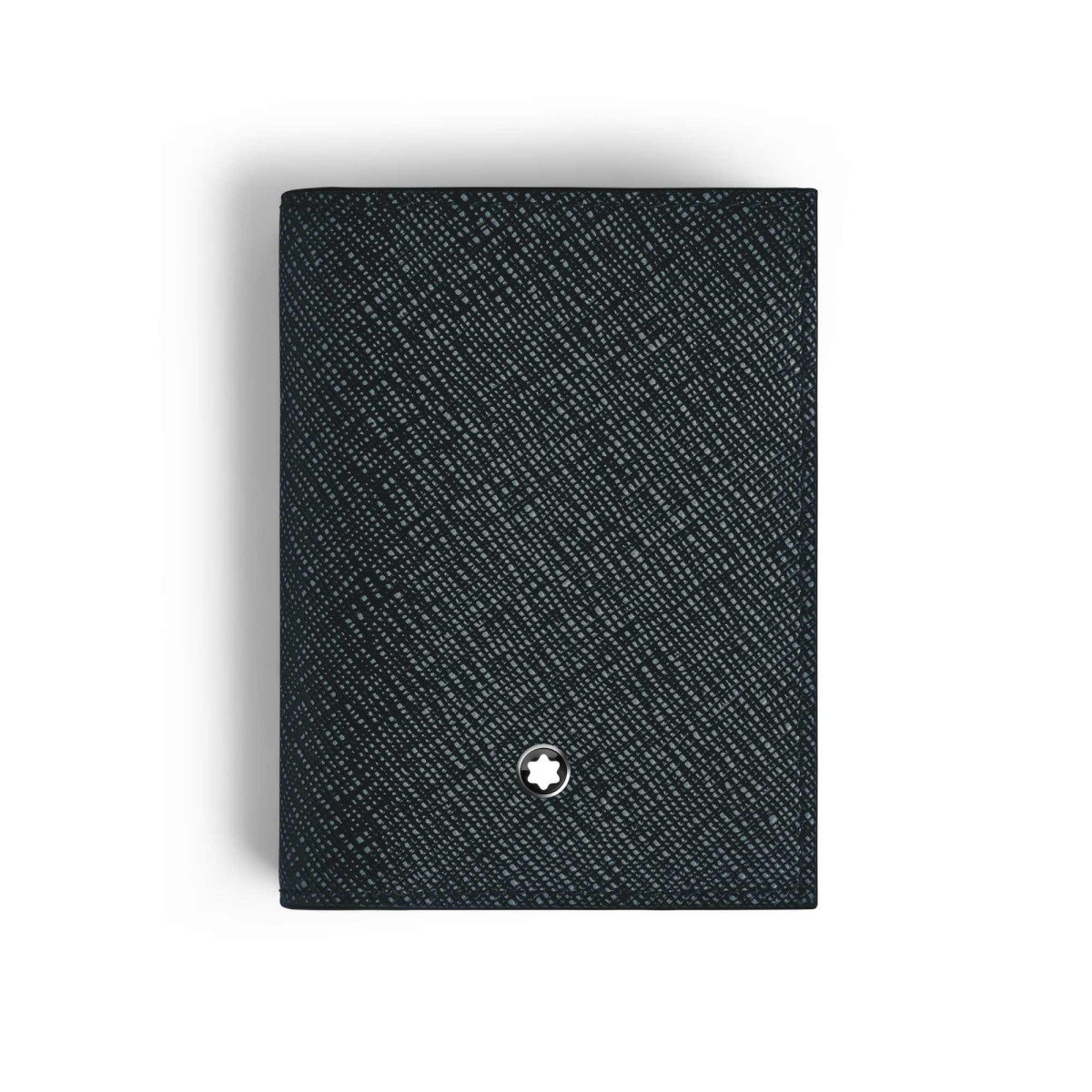 Ref. MB220391 - Dieses kompakte und zugleich vielseitige Kartenetui ist aus zweifarbig geprägtem Leder in einer eleganten Kombination aus Blau und Schwarz gefertigt. Es wurde mit funktionalen Details innen und außen gestaltet und verfügt über drei Kreditkartenschlitze, ein Visitenkartenfach und ein zusätzliches Innenfach, während die Außenseite ein zusätzliches Fach für eine vierte Kreditkarte bietet.