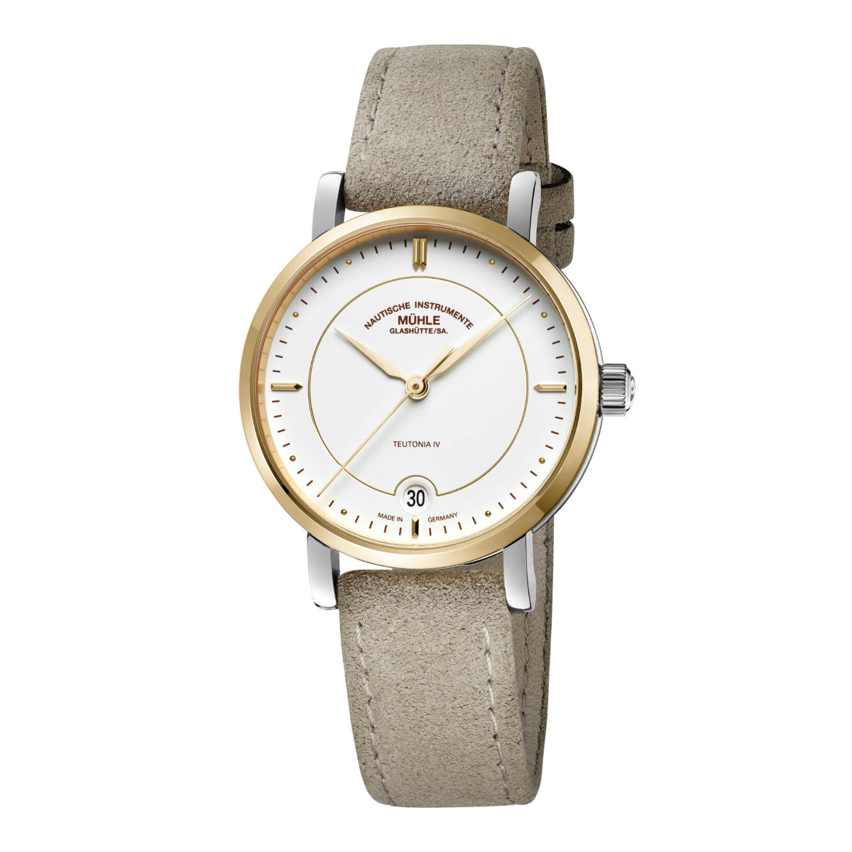 Ref. M1-44-51-LB-V-VII - Zugegeben, Schönheit liegt immer im Auge des Betrachters. Aber auch objektiv betrachtet ist die neue Teutonia IV Lady mit ihrem eleganten Bicolor-Gehäuse eine Augenweide: Denn für die Lünette dieser eleganten Damenuhr verwenden wir 18 Karat Gelbgold.