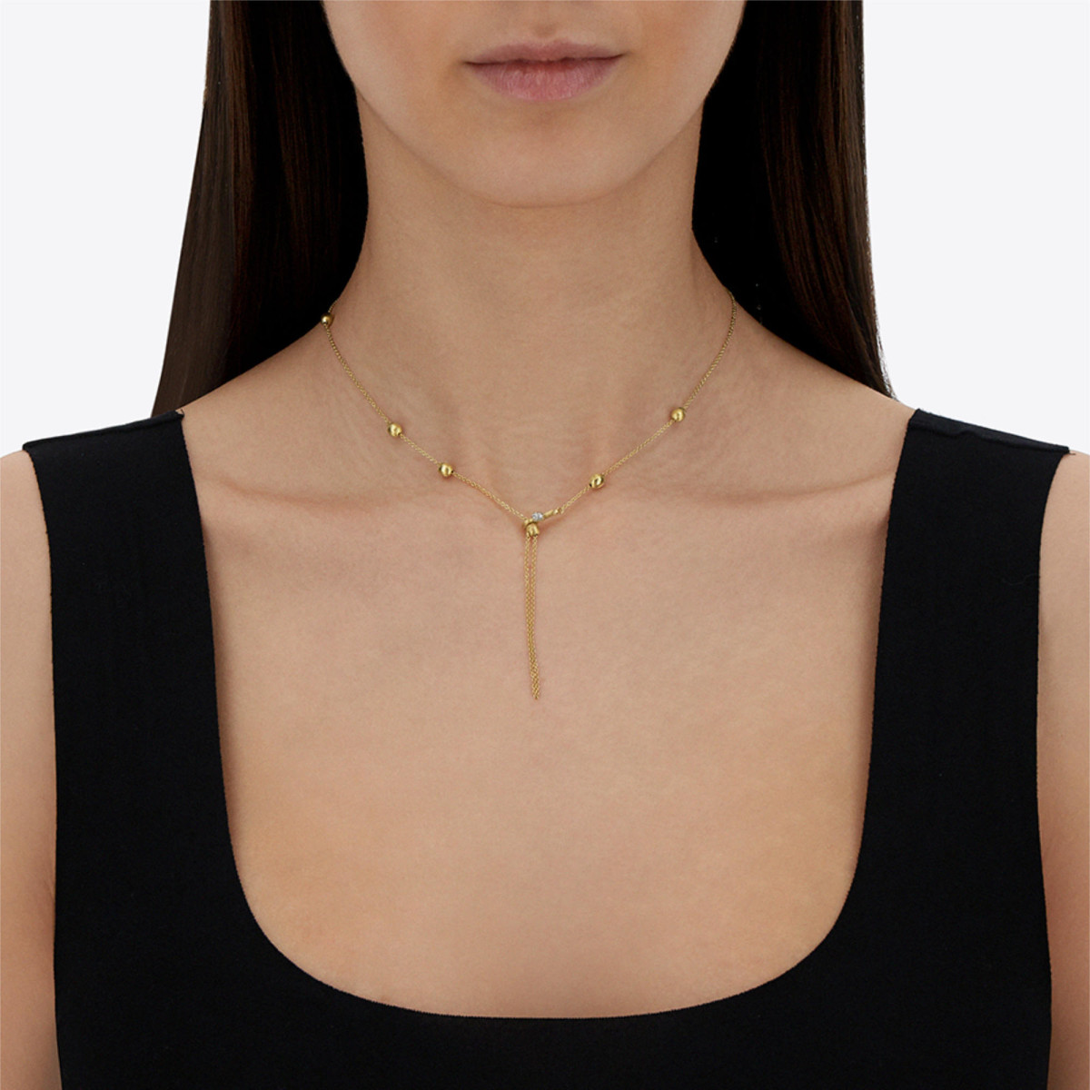 Ref. CS32-583 - Frei, leicht, und immer bereit, sich zu verändern: das ist SOFFIO GITANO, ein Schmuckstück, das Handwerkstradition mit der Dynamik der modernen Frau vereint. Tatsächlich ist der Reiz der Veränderung die wahre Inspiration für diese Kreation aus 18kt Gold und Brillanten. Laura, unsere Designerin, hat sie als Ring und Armband zugleich erdacht, einzigartig gemacht durch den ikonischen Verschluss aus Diamanten, der die Hand mit unglaublicher Rafinesse schmückt. Der selbe Verschluss erlaubt es, das Schmuckstück zu öffnen und in eine herrliche Kette zu verwandeln, charakterisiert durch handgravierte Boules aus Gold. Ein Meisterwerk der Vielseitigkeit und Kreativität, fähig, euch bei jedem Abenteuer zu begleiten.