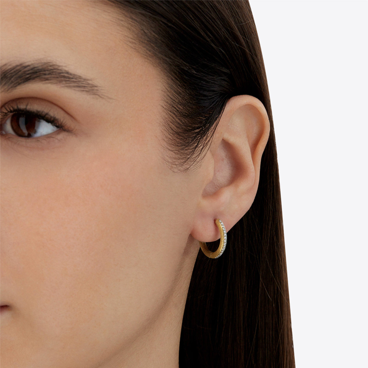 Ref. OS11-602 - So unverzichtbar wie unverwechselbar: diese Creolen aus 18kt Gold und Diamanten, von unseren Goldschmieden handgraviert, eignen sich perfekt für jeden Look! Lauras Ratschlag? Spielt mit diesem Schmuckstück, und wenn ihr mehrere Ohrlöcher habt, kombiniert verschiedene Modelle miteinander!