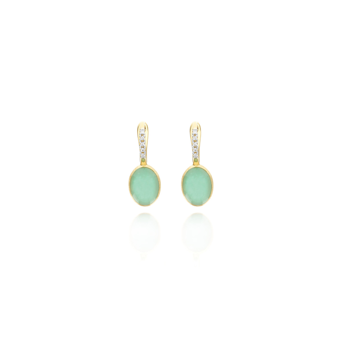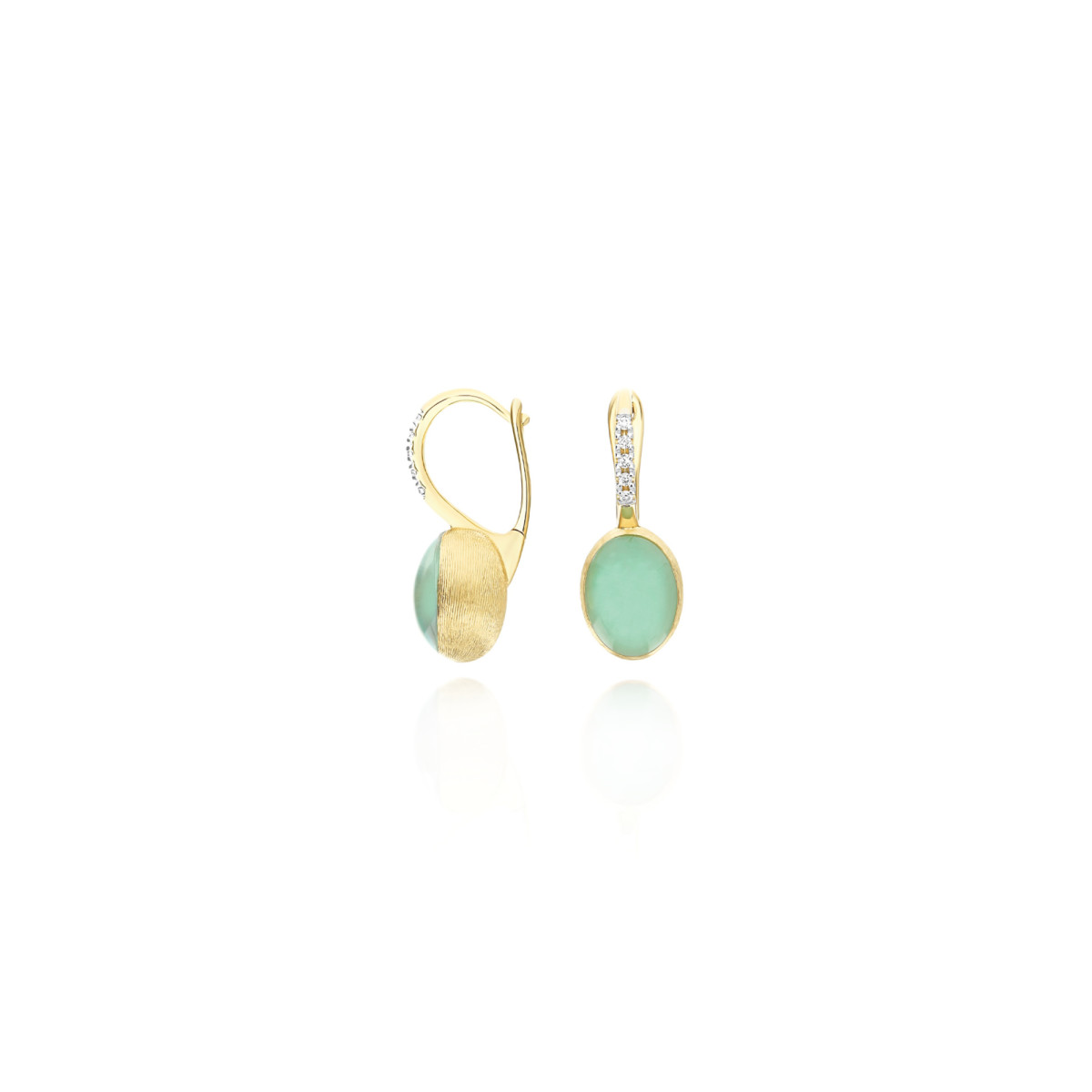 Ref. OS4-609 - Die lebendigen Farbtöne des Latte e menta (Milch mit Minze), dem bekannten italienischen Getränk, das in den 70er Jahren entstanden ist, erneuern die ikonischen Nanis Ciliegine im Überschwang , und erwecken diese Ohrringe der Kollektion Boules zum Leben, entstanden aus der Begegnung des 18kt Goldes mit einer Dublette aus Bergkristall und Jadeit. Tradition und Moderne, Nostalgie nach einer vergangenen Epoche, und der Wunsch, auf die Zukunft zuzulaufen, vereinen sich so in einem unverwechselbaren Juwel. Unser Ratschlag? Spiele mit verschiedenen Farben und Modellen der Ciliegine Reihe und kreiere deine Lieblings-Kombination.