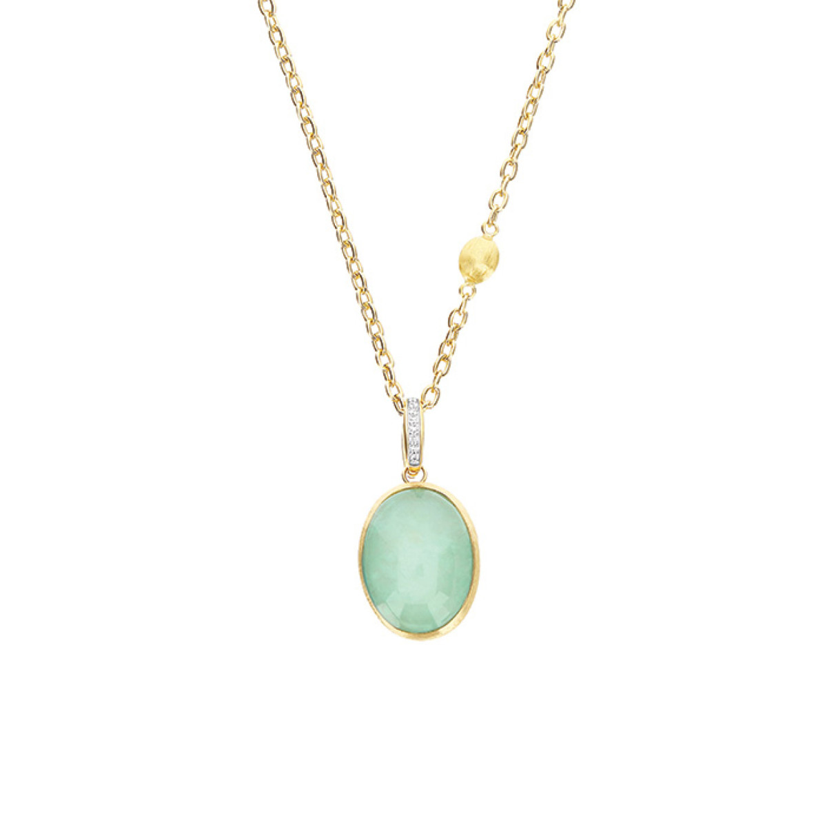 Ref. PS8-609 - Unsere Boule, die ikonische Form von Nanis, die sich seit über 30 Jahren in ständiger Evolution befindet, verwandelt sich, und wird zu einem kostbaren Charm in lebhaften und prickelnden Farben, inspiriert von einem der bekanntesten italienischen Getränke der 70er Jahre: "Latte e menta", die Milch mit Minze. In diesem Juwel begegnet das 18kt Gold einer Dublette aus Bergkristall und Jadeit, und erweckt einen Anhänger zum Leben, der dazu gedacht ist, deine Nanis Juwelen dank seines praktischen Verschlusses mit Klasse und Eleganz zu personalisieren.