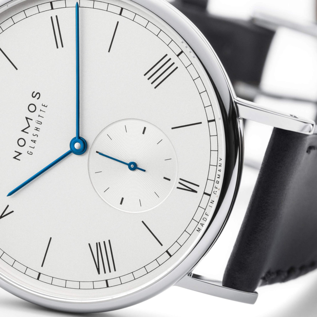 Ref. 235 - Mehr Stil fürs Handgelenk: Mit 38 Millimetern Durchmesser ist Ludwig noch entschiedener, maskuliner. Handaufzug und Stahlboden verraten Traditionsbewusstsein und auch das Zifferblatt mit den römischen Indizes und der Eisenbahn-Minuterie ist ein echter Klassiker. Die temperaturgebläuten Zeiger, das coole Gehäuse aus Edelstahl halten modern dagegen.