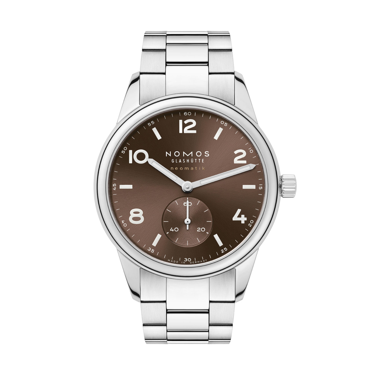 Ref. 760 - Diese Automatikuhr strahlt in tiefen Tönen. Als Instrument wäre Club Sport neomatik 39 tabac der Bass, den man vielleicht nicht sofort heraushört, der aber auf keinen Fall fehlen darf. Eine Sportuhr, die die Persönlichkeit unterstreicht und vervollständigt, mit ihr am Arm stimmt plötzlich alles. Das Zifferblatt der Glashütter Automatikuhr ist galvanisiert und mit Strahlenschliff versehen, das Gehäuse mit einem Durchmesser von 39,5 Millimetern bestens proportioniert. Im Inneren arbeitet das manufakturgefertigte Automatikkaliber DUW 3001 mit hauseigenem Assortiment NOMOS-Swing-System.