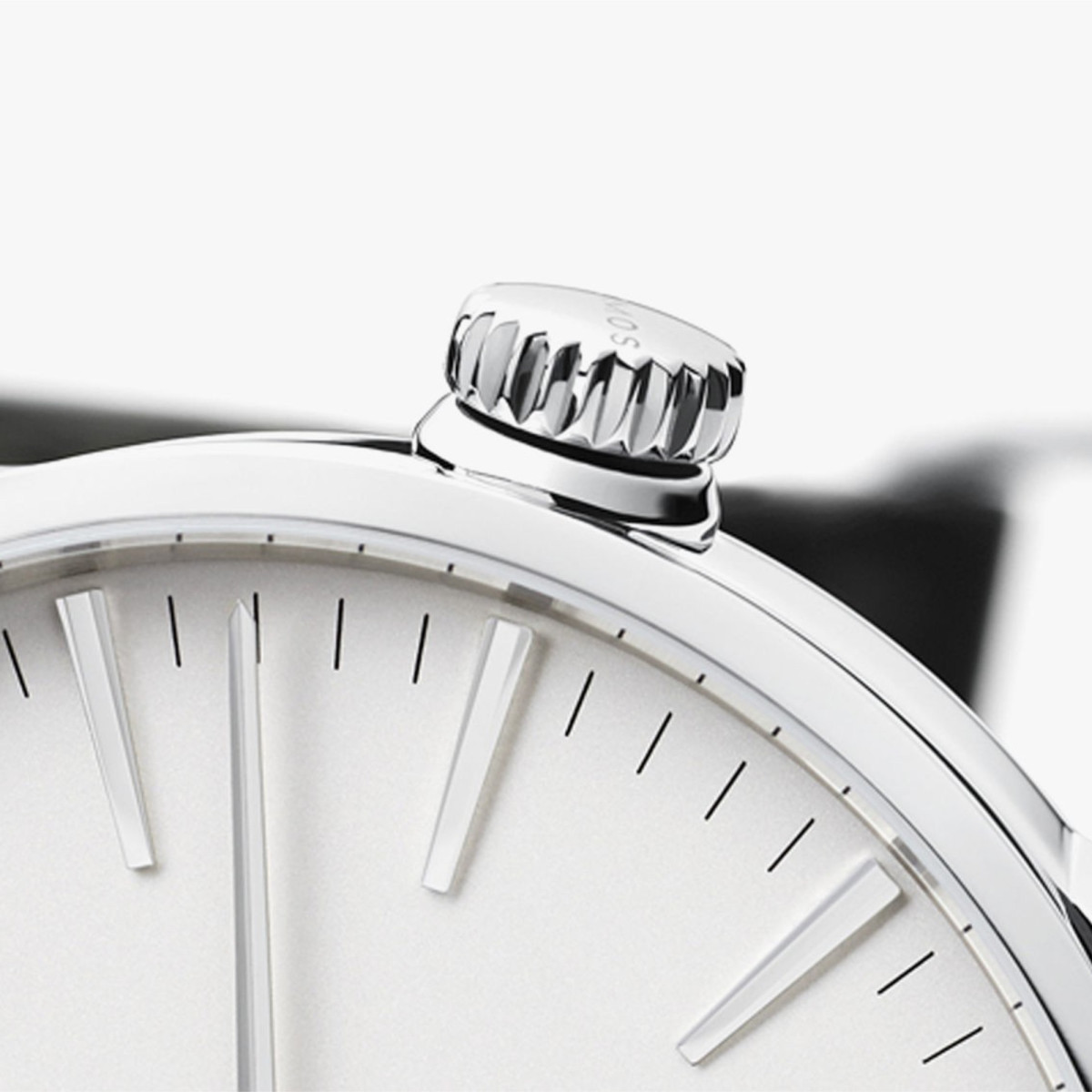 Ref. 806 - Wenn die Welt eine Zifferblatt-Scheibe ist, dann ist Zürich ihr Mittelpunkt. Diese markante und vielfach designpreisgekrönte Automatikuhr hat der Schweizer Industriedesigner Hannes Wettstein für NOMOS Glashütte entworfen: mit schmaler Lünette, markanten Anstößen, aufregend komplexen Verdrehungen des Uhren-Bodys. Mit silberweißem Zifferblatt längst ein Klassiker.