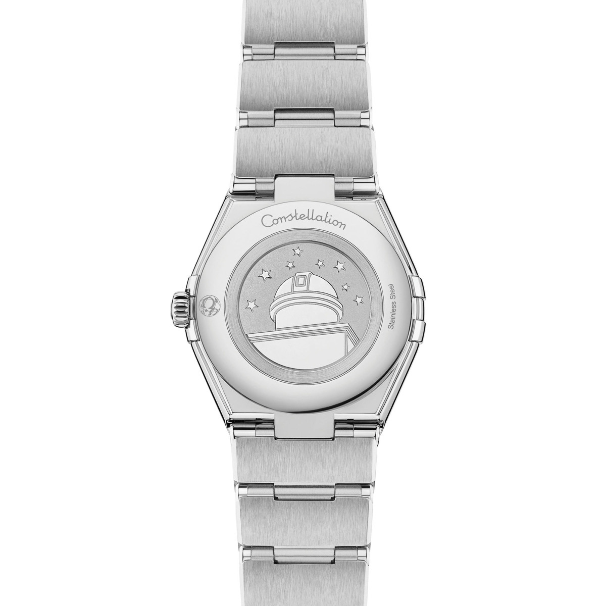 Die Uhr wird von einem typischen polierten Monoblock-Armband mit komfortabler Verschlussanpassung am Handgelenk gehalten und von dem OMEGA Kaliber 4061 angetrieben, das sich hinter einem geprägten Constellation Observatoriumsmedaillon auf dem Gehäuseboden verbirgt.