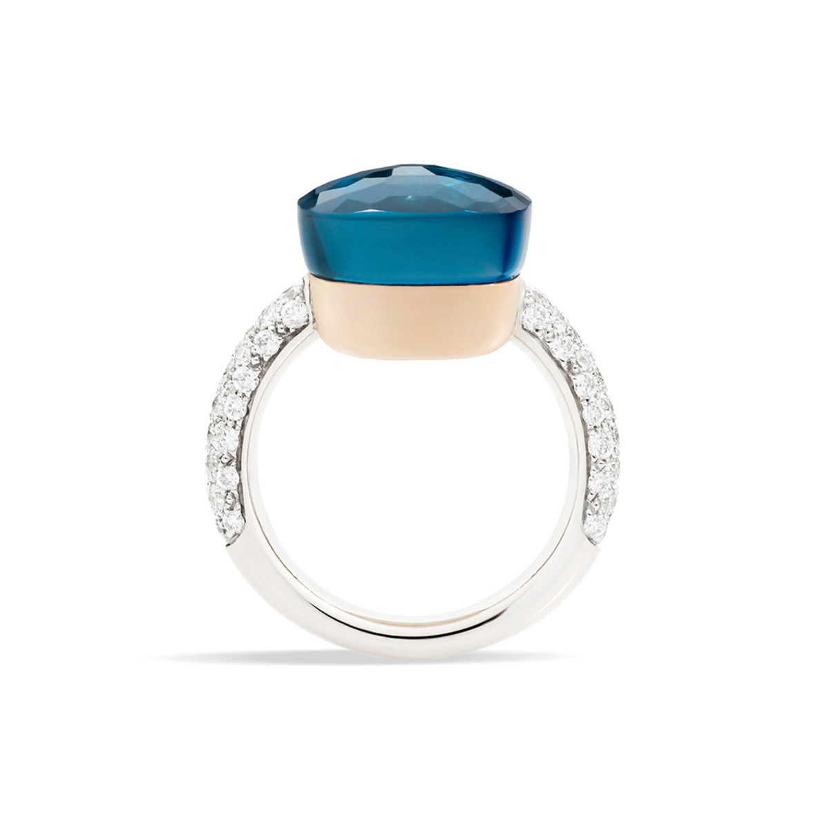 Ref. PAB4010O6000DB0TL - Nudo, Seit 2001. Das Symbol von Pomellato. Die Ring-Ikone mit unverwechselbaren Konturen, bietet eine breite Palette an Steinen in Aquarelltönen für endlose Farbkombinationen ganz nach persönlichem Geschmack. In den Versionen Klassik, Maxi, Petit und With Diamonds.